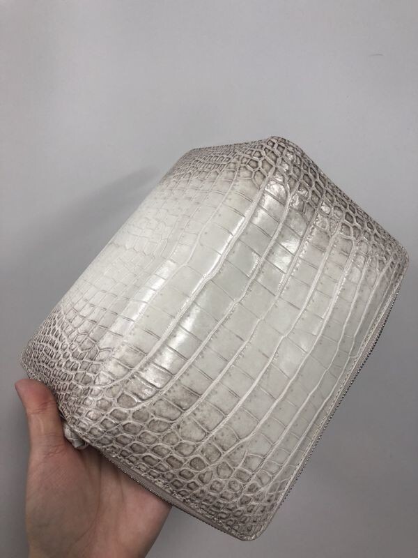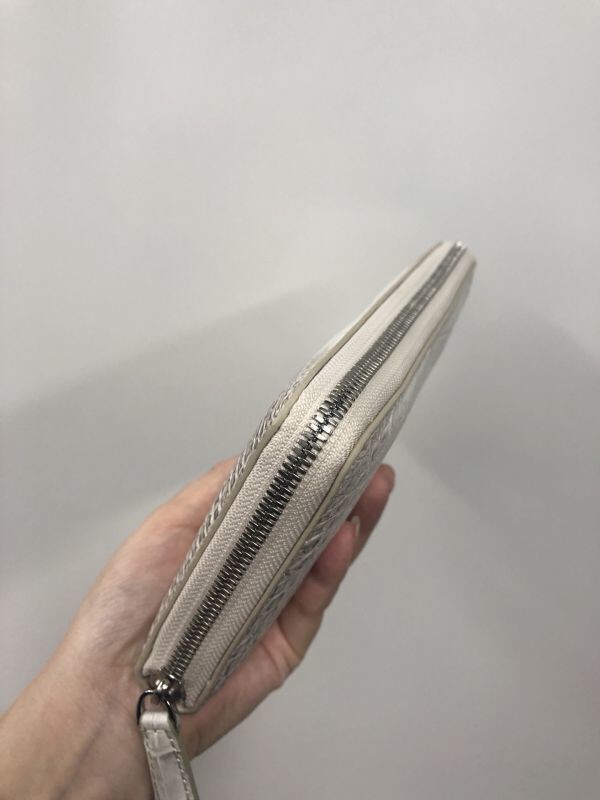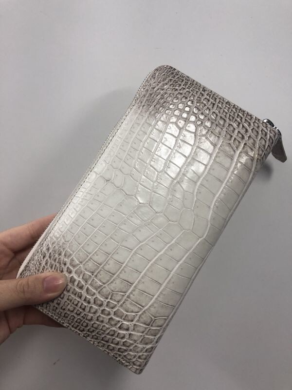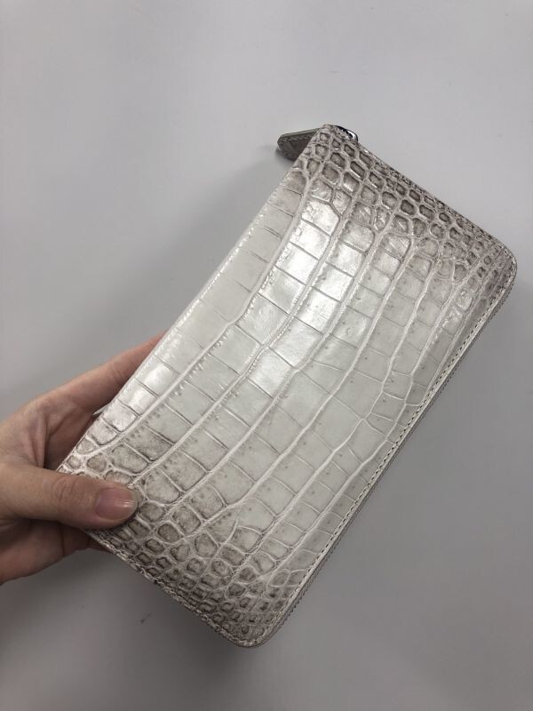 大容量【ヒマラヤホワイト】クロコダイル ワニ革 腹革 長財布 本物 ラウンドファスナー メンズ財布 一枚革 小銭入れあり 未使用