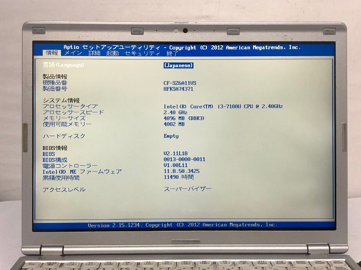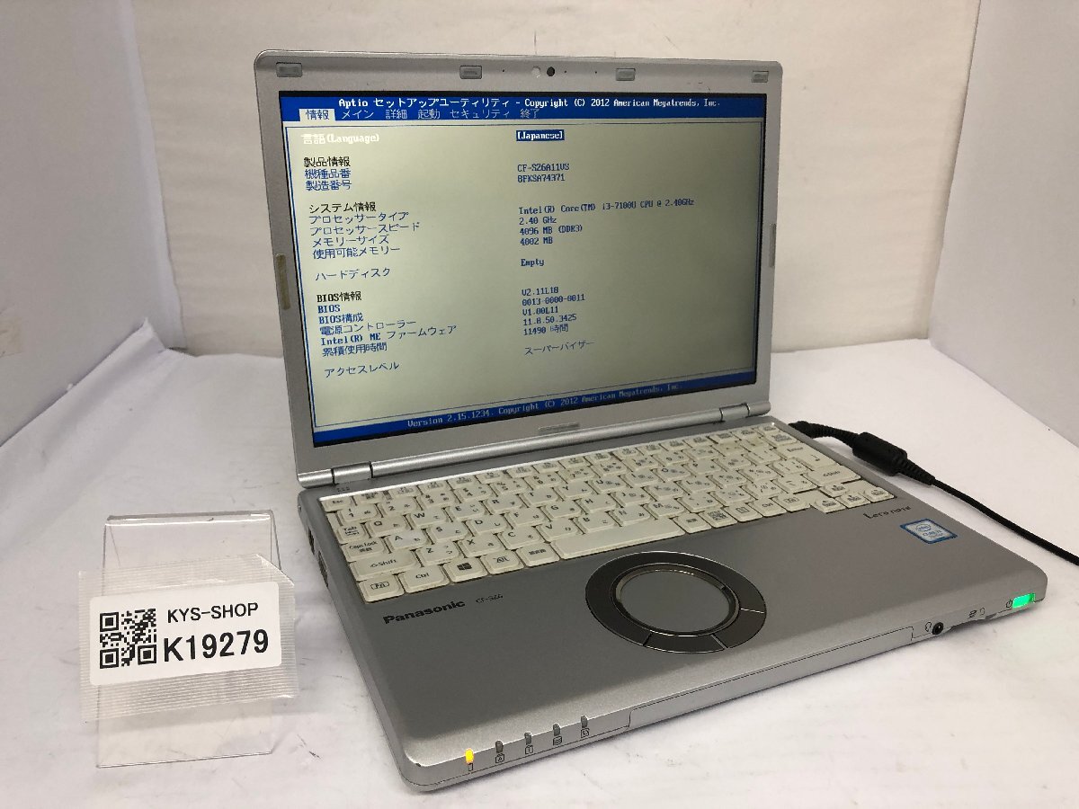 ジャンク/ Panasonic CF-SZ6A11VS Intel Core i3-7100U メモリ4.1GB ストレージ無し 【K19279】