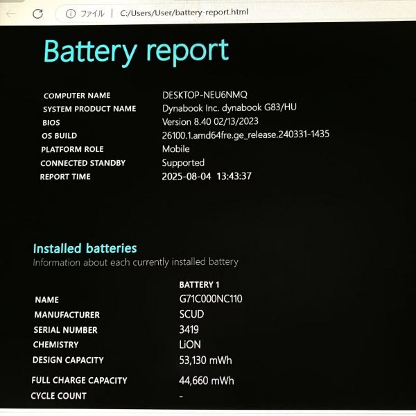 ・中古整備済です。 ・動作確認済み、すぐ使用OK。 ・高速SSD換装済み。起動が早いです。 ・Microsoft Office2024 ライセンス認証済み ・動作面などは問題なく、スペックとしてはコスパおすすめです。 ※ほかのページにも同タイプの商品を出品しています。 【商品の説明】 ★メーカー:TOSHIBA dynabook G83/HU ★CPU:Core i5-1135G7 2.40GHz-2.42GHz ★メモリ容量:8GB ★ストレージ容量:256GB ★OS:Windows11Pro ★画面サイズ:13.3型 ★光学ドライブ:なし ★無線LAN:有り ★HDMI:有り ★Webカメラ:有り 【訳あり内容】 ・本体に傷、汚れ、ひびがあります。※画像参照 ・ディスプレイに白いムラがあります。※画像10参照 ・液晶にキーボードの跡がついています。 ・電源アダプタ付属しません。 ・裏面カバーが交換されているため型番が違います。 【確認事項】 ・電源・起動 OK ・無線wifi接続 OK ・キーボード入力 OK ・タッチパッド操作 OK ・外装、キーボード清掃済み 【注意事項】 ※中古品につき、細かいすり傷、汚れなどはご了承お願いいたします。 ※バッテリーは保証外とさせて頂きます。消耗品につき劣化している可能性あります。 ※精密機器につき、出品時(動作確認時)から時間が空きますと思わぬ不具合が起きる場合があります。その際代替品、キャンセルのご提案をさせて頂く場合がございます。ご了承お願いいたします。 ※お届けした商品に初期不良があった場合は、速やかにご連絡ください。当社で確認のうえ、初期不良として交換もしくは返品対応いたします。 なお、返送される際の発送料金は当社負担とさせていただきます。 それ以外の理由による交換・返品には応じられませんので、あらかじめご了承ください。 【配送料について】 ◎送料本土一律:1,000円(税込) ※北海道:1,200円(税込) ※沖縄、離島:2,000円(税込) ※2点までは送料変わらず同梱可能です。 3点目以降、1点につき+500追加送料発送いたします。 | |||