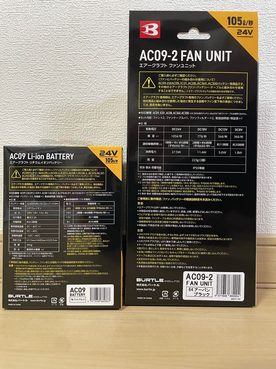 ☆未使用品☆ バートル 2025年新モデル (AC09)リチウムイオンバッテリー 24V (AC09-1)ファンユニット 24時間以内発送 空調服