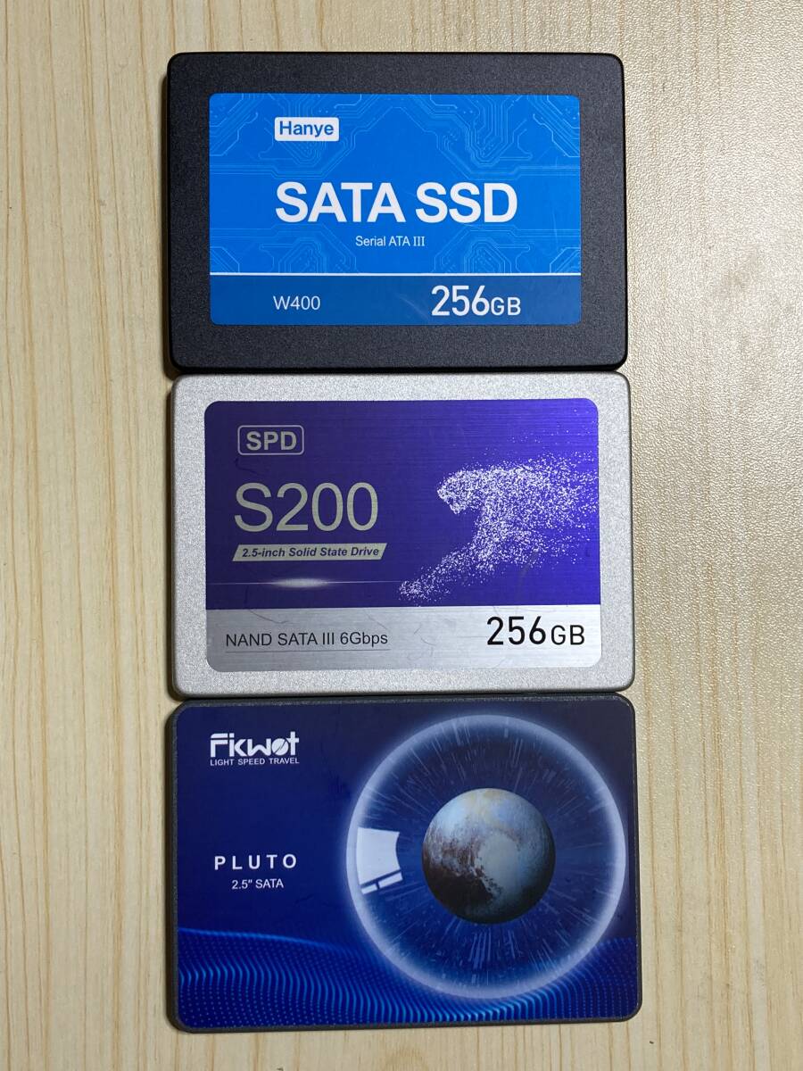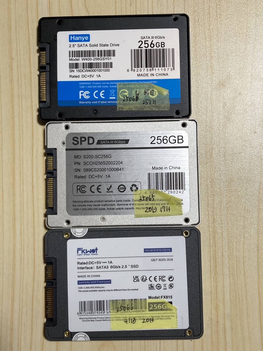 【使用時間極少】中古 内蔵SSD256GB×3 Hanye製 SPD製 FIKWOT製 Serial ATA 2.5インチ