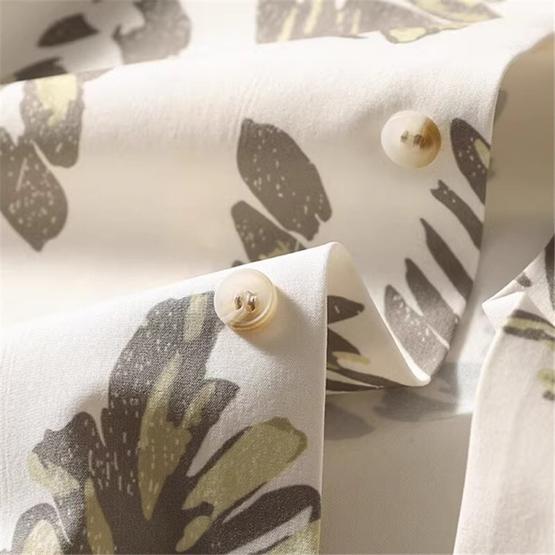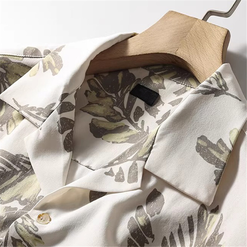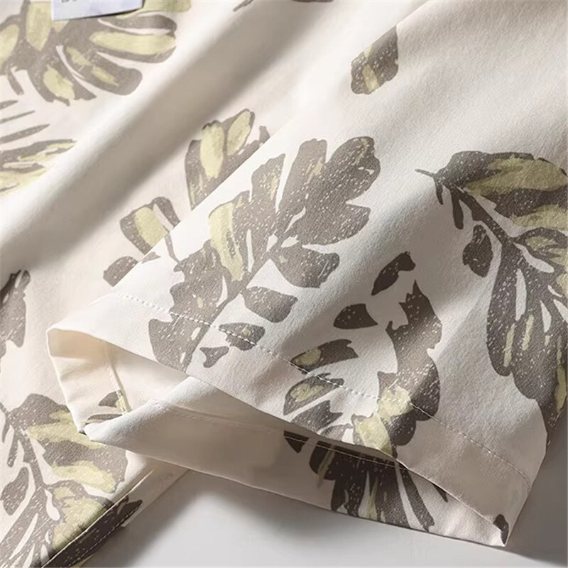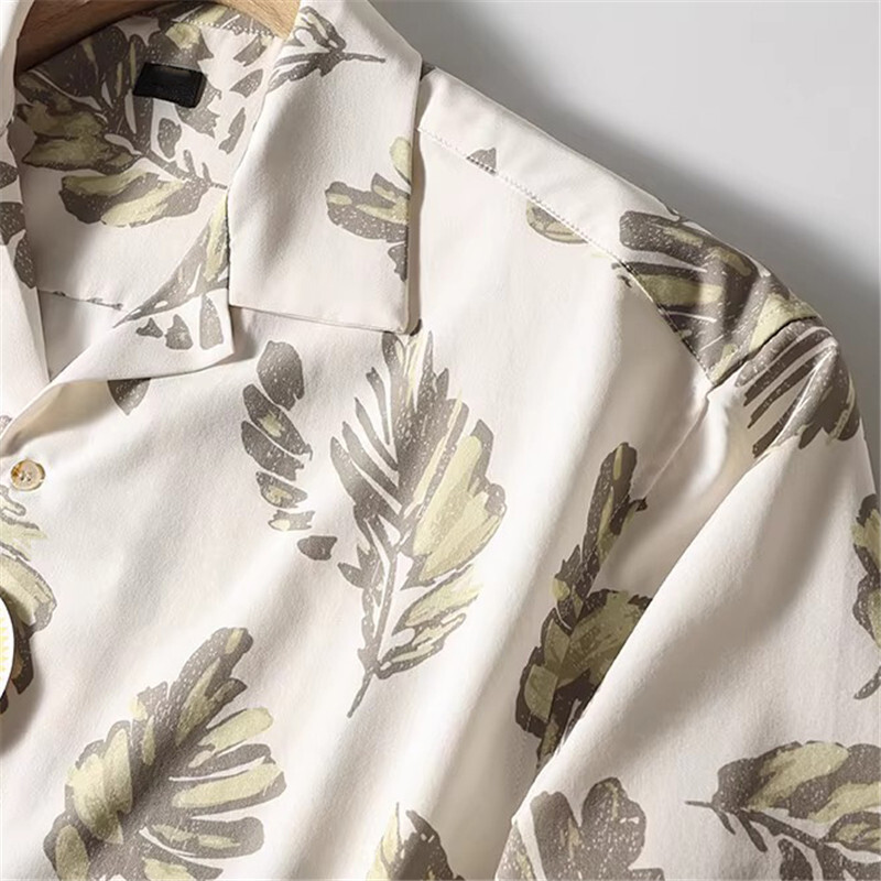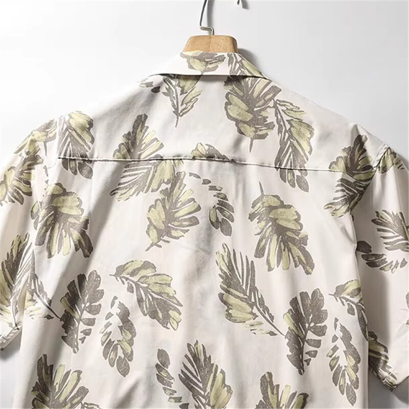 T1842-L ベージュ 新品 アロハシャツ 半袖 サマー メンズ 総柄 オープンカラー シャツ 春夏 リーフプリント 盛夏 開襟 アロハ トップス