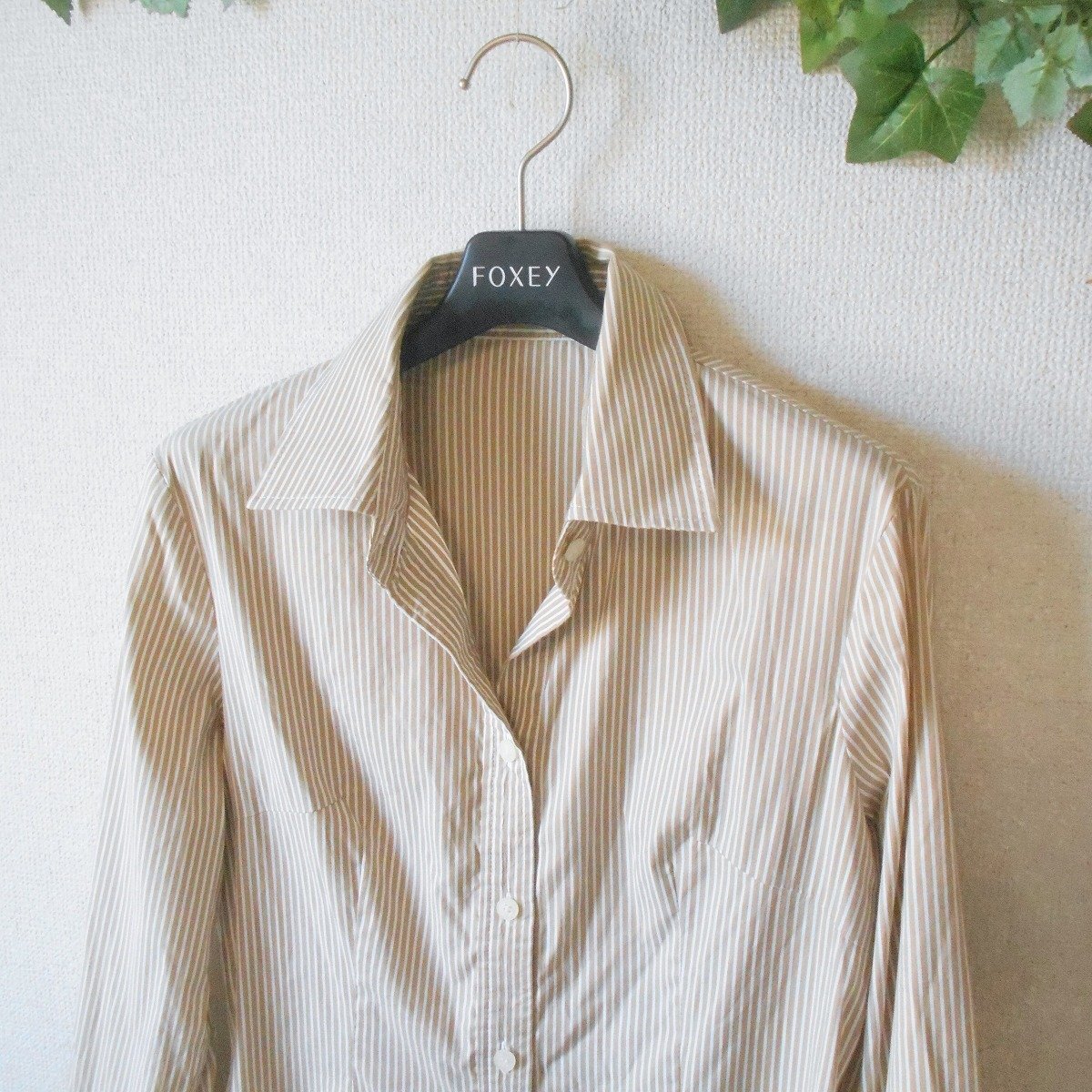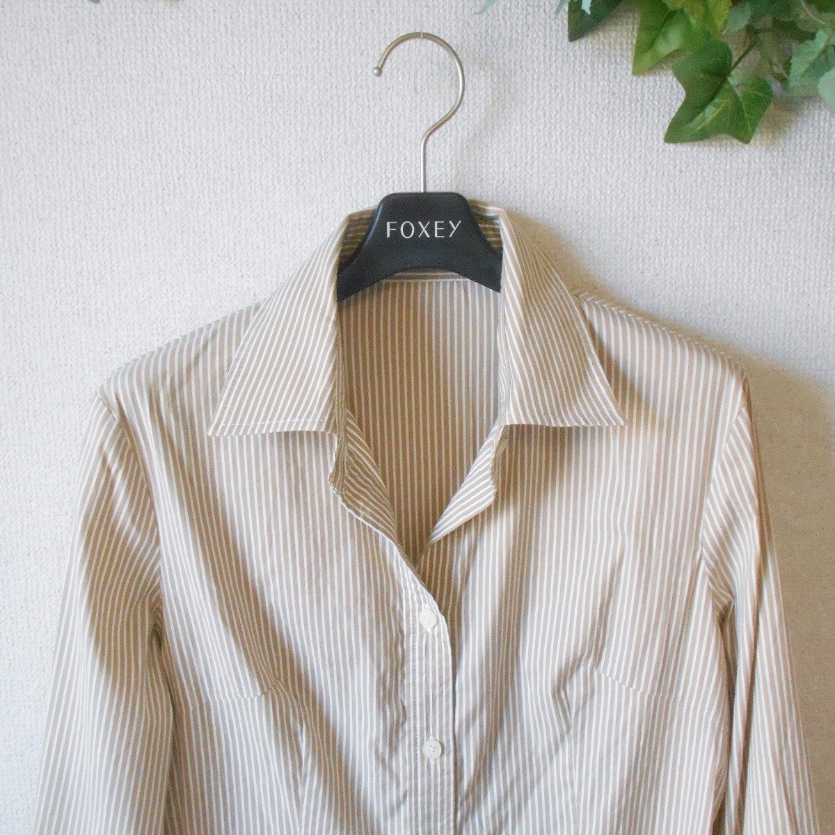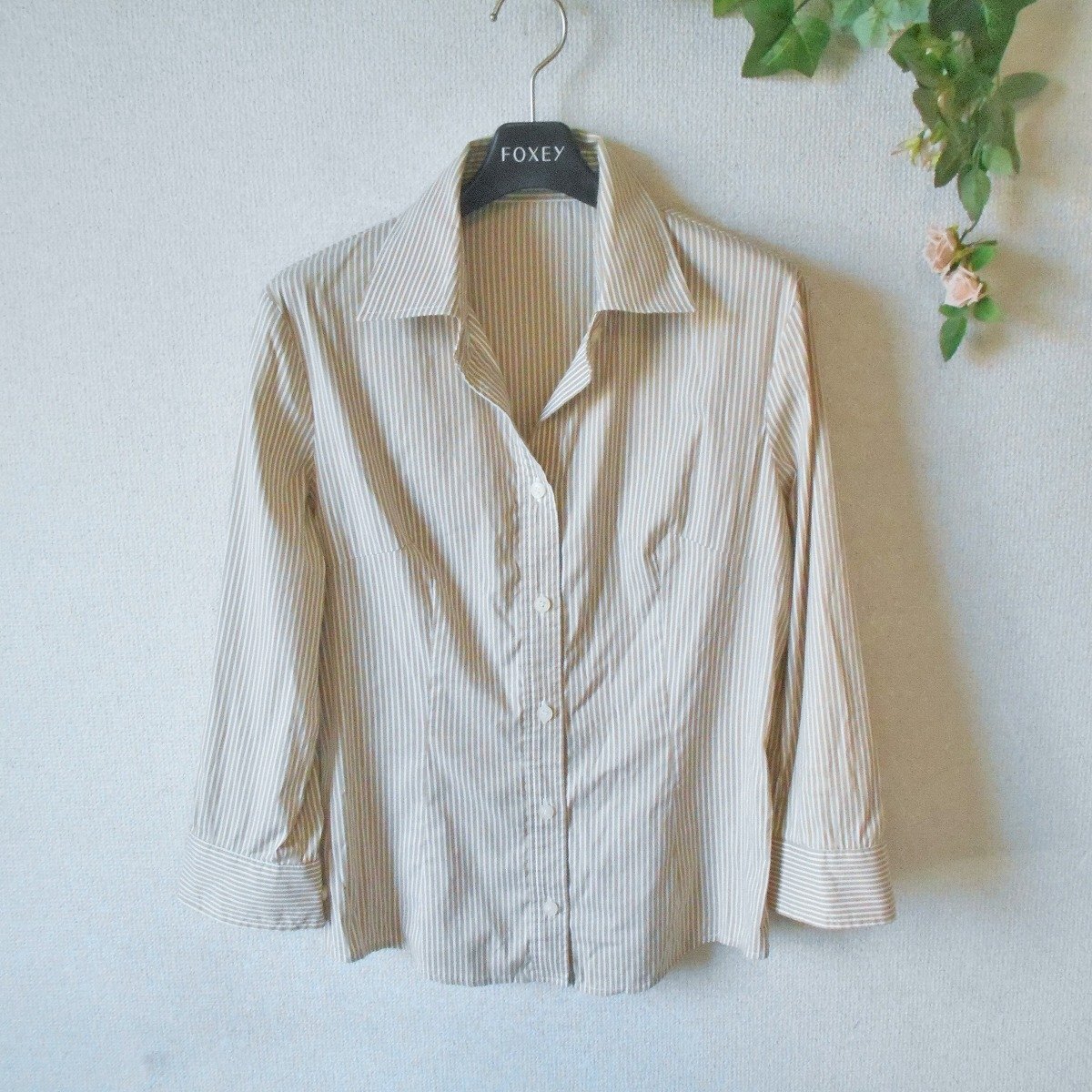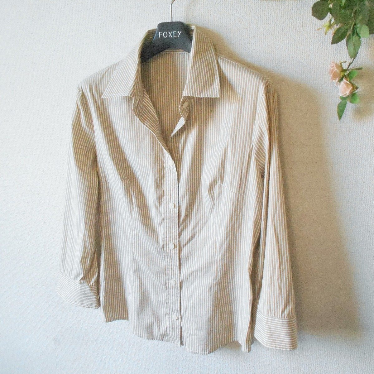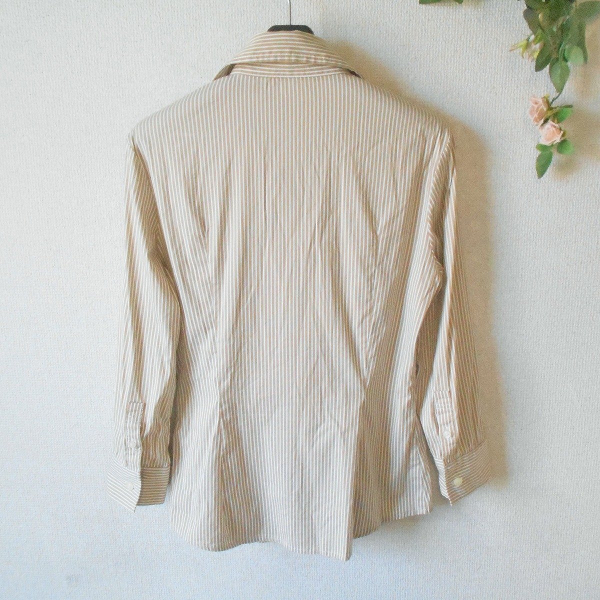 【ポイント】ルスークのレディース用シャツになります。お色はベージュと白色のストライプで7分袖の春夏を中心に着ていただけるお品です。