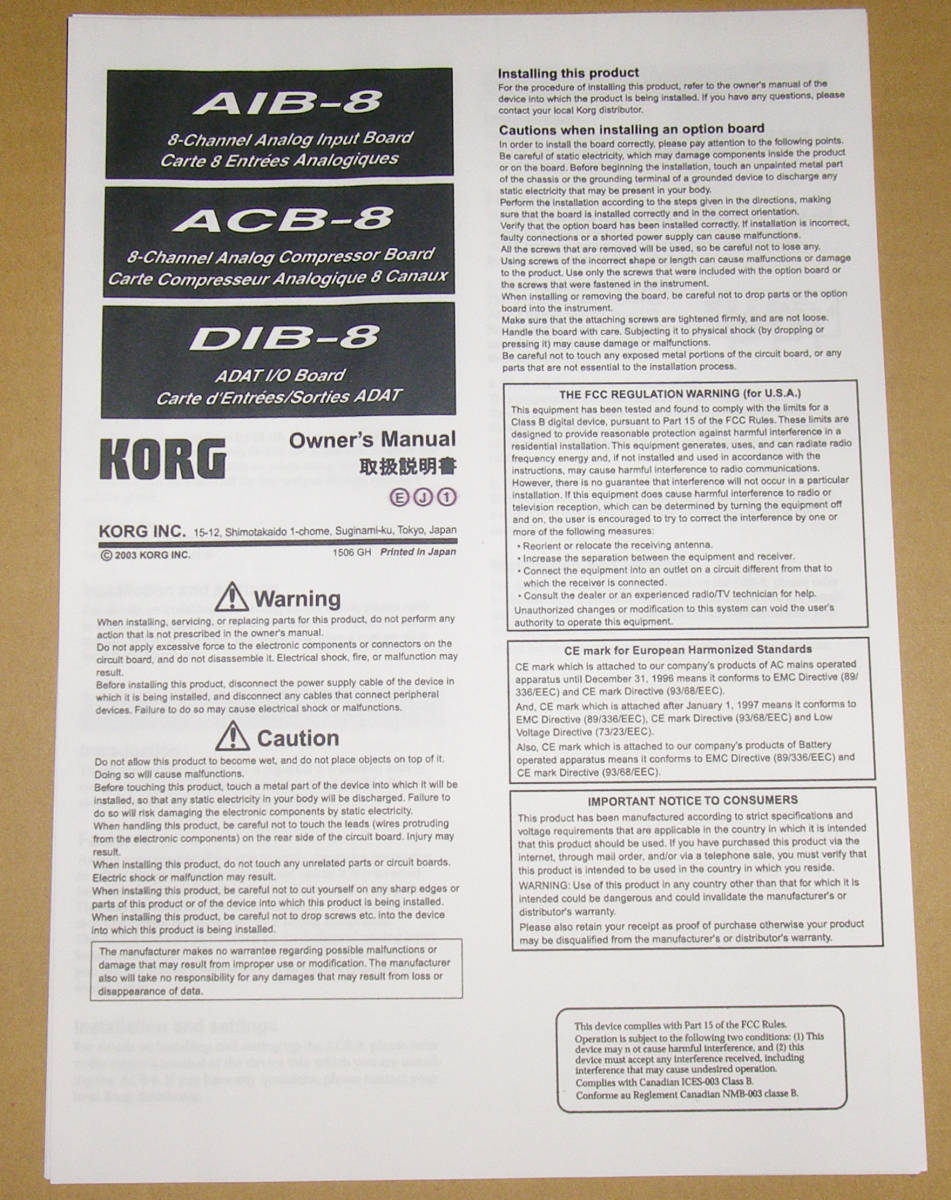 ★商品説明★ ■KORG D16XD/D32XD ACB-8 8-CHANELL ANALOG COMPRESSOR BOARDの出品です。 ◇タバコ臭、ペット臭、ベトベト無し。 ■動作確認しております。製品の方は問題なく動作しておりましたが、あくまでも中古扱いとさせて頂きます。 ★支払方法★ Yahooかんたん決済のみ。決済手続き確認後の発送となります。 ★注意事項★ ノークレーム・ノーリターンでお願い致します。※土日曜・祝日は発送できません。予めご了承下さい。 ★発送詳細★ 恐れ入りますが、振り込み手数料と送料は落札者様のご負担でお願いします。送料は185円です。 |