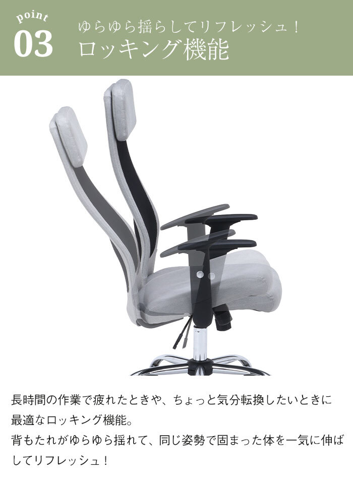 | 商品名: | オフィスチェア ハイバック メッシュ 肘付き デスクチェア 昇降 ロッキング 回転 キャスター付き |