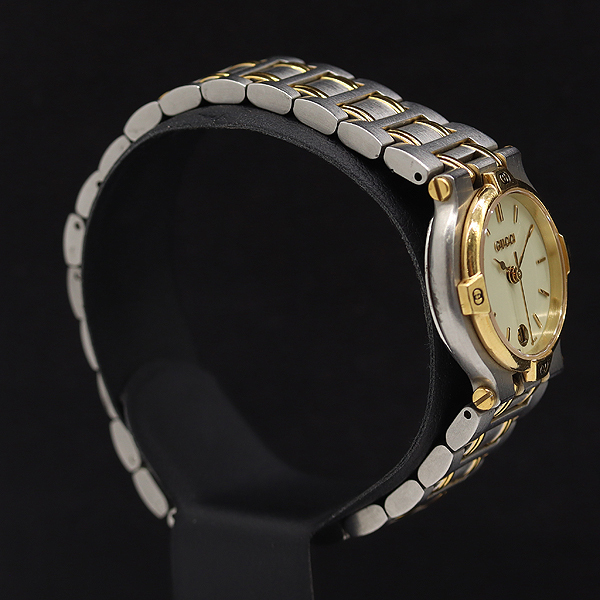 1円 稼働 グッチ 9000L QZ アイボリー文字盤 レディース腕時計 3474000 7ERY KTS