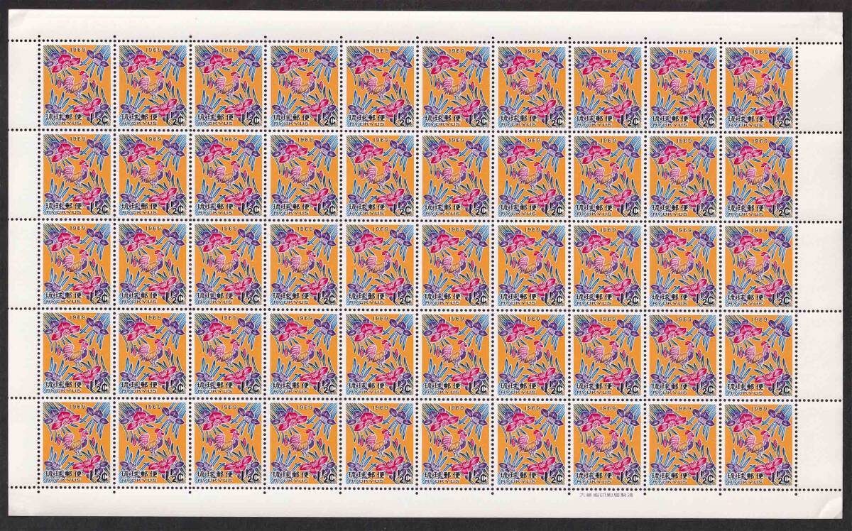 ★早期終了★琉球・沖縄/1969年用年賀切手/とり50面1 シート