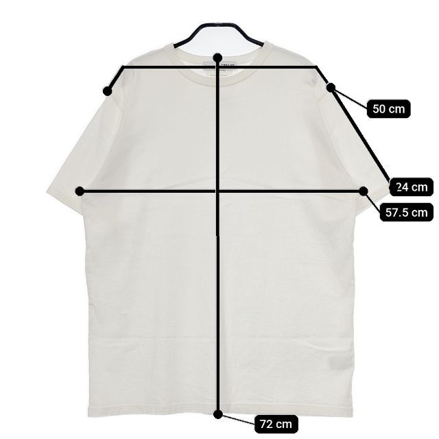 | 実寸サイズ | 肩幅:約50cm 着丈:約72cm 身幅:約57.5cm 袖丈:約24cm ※採寸画像がある商品はハンガーに吊るした状態での計測のため、平置きでの採寸とは差が生じる場合がございます。平置きでの実寸サイズをご希望の場合は、ご購入前に必ずご質問ください。 ※記載以外のサイズが合わないことを理由とした返品はできませんので、 記載部分以外で実寸サイズの気になる箇所があれば必ず購入前にご質問ください。 |