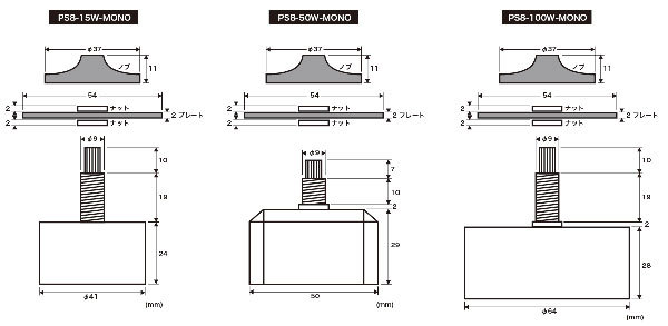 | スピーカーアッテネータ- PS8-100W-MONO <100ワット、8Ω>, AT-60H | |