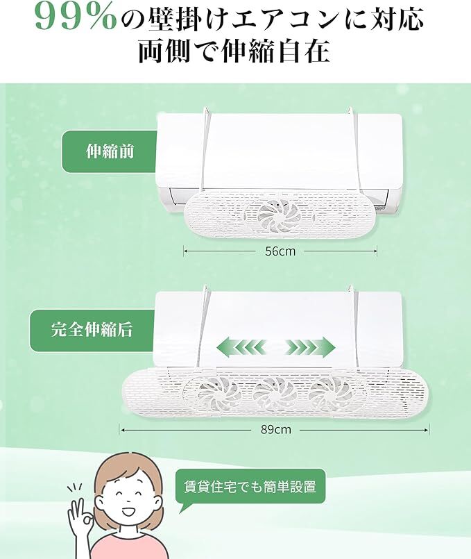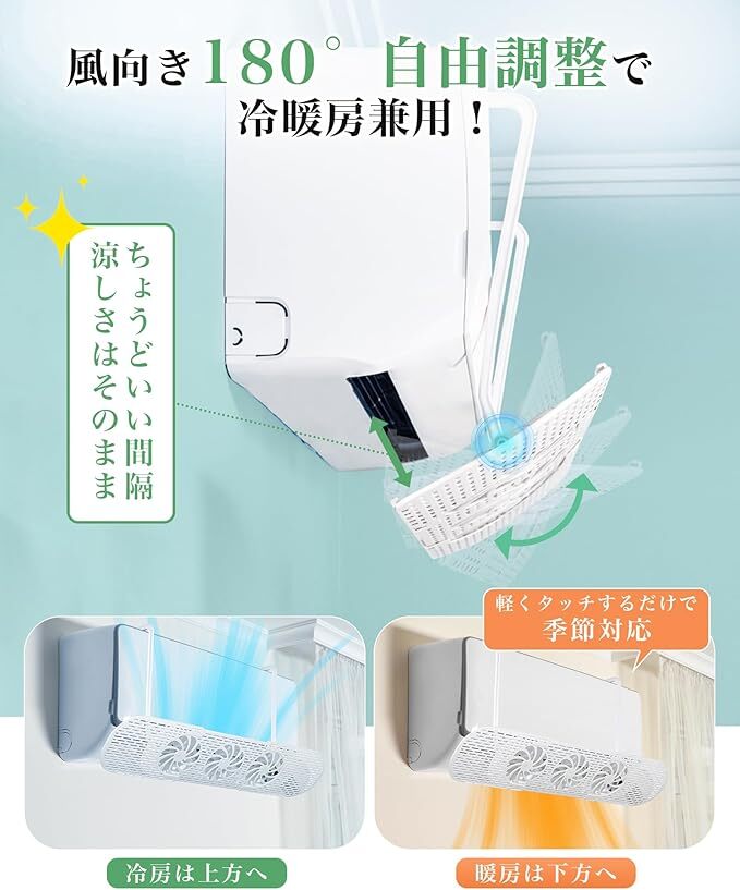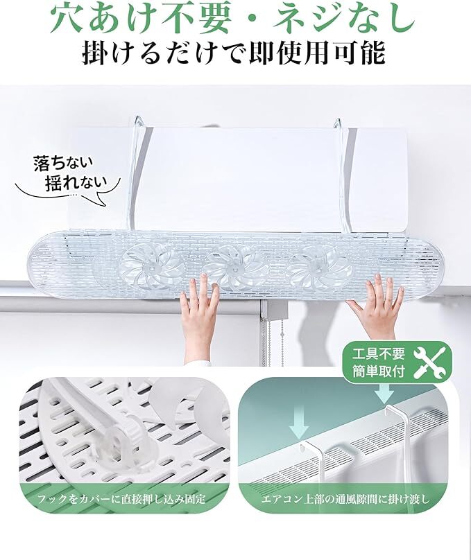 Amazon | エアコン風よけカバー アイクラシ(Ikurashi) 直撃風防止 ファン3つ付き 風向き上下180°調整 壁掛けエアコン風除け 伸縮自在 冷房暖房通用 エアコン病対策 取り付け簡単 透明 56~88cm