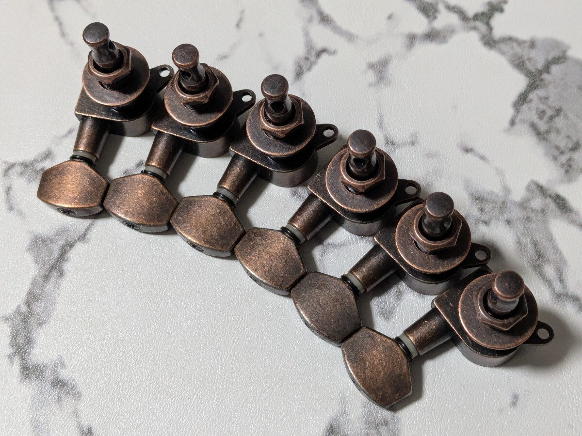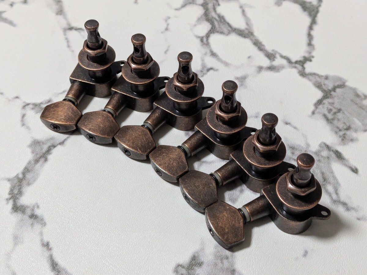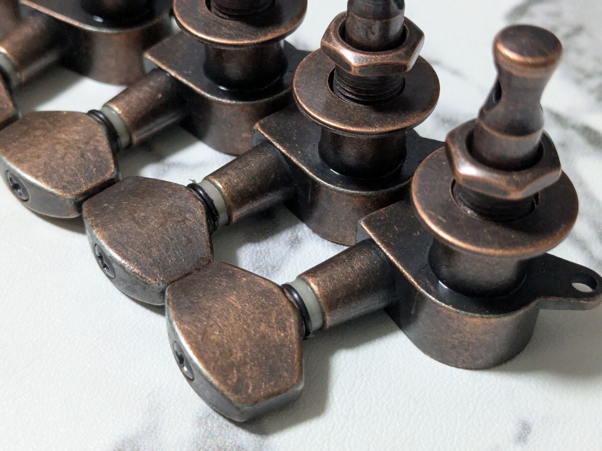 ●ペグは最適とされるヘッド厚1.7cm以上のヘッド厚の厚いギター(または薄過ぎるギター等も)、に取り付けされる場合、ナットの咬みが浅いために取り付けが出来ない場合がございますが先方事情とし返品不可とさせて頂きますのでご了承下さいませ。(ヘッド厚にムラがあるギター、個体差、塗装の厚いギターでヘッド厚が厚くなる等、様々なケースが頻繁にございますのでご注意下さいませ)
