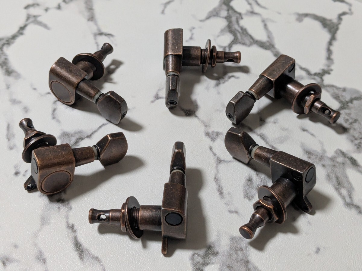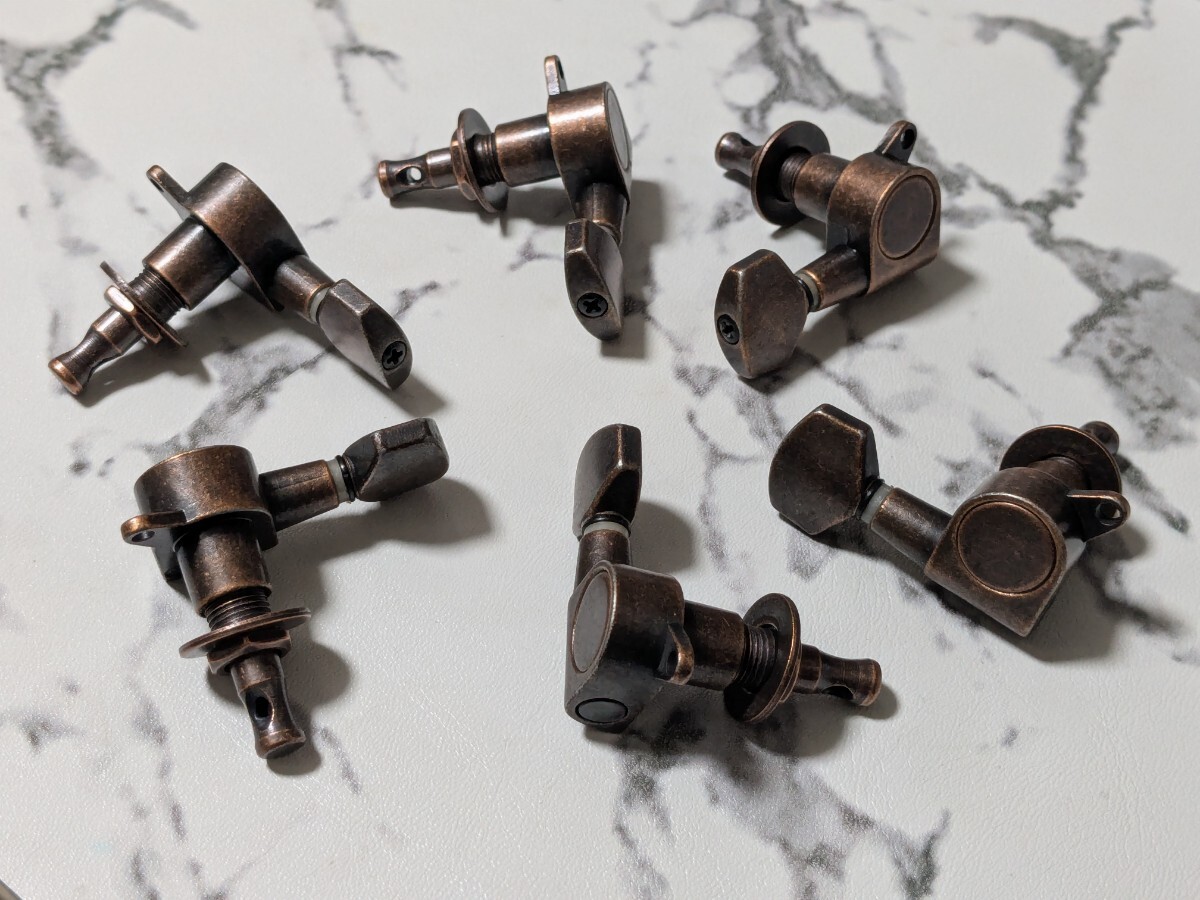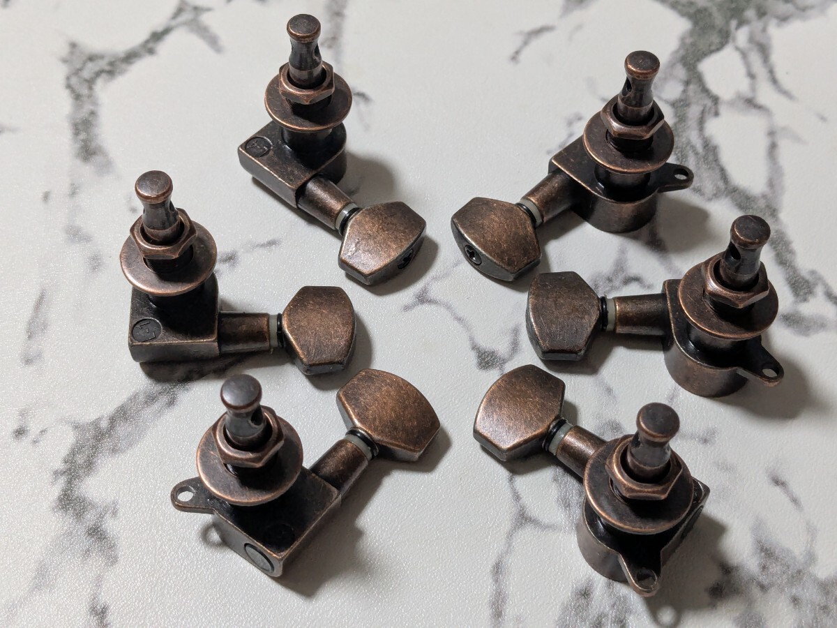 ●ペグは最適とされるヘッド厚1.7cm以上のヘッド厚の厚いギター(または薄過ぎるギター等も)、に取り付けされる場合、ナットの咬みが浅いために取り付けが出来ない場合がございますが先方事情とし返品不可とさせて頂きますのでご了承下さいませ。(ヘッド厚にムラがあるギター、個体差、塗装の厚いギターでヘッド厚が厚くなる等、様々なケースが頻繁にございますのでご注意下さいませ)