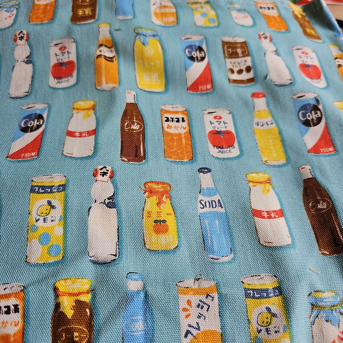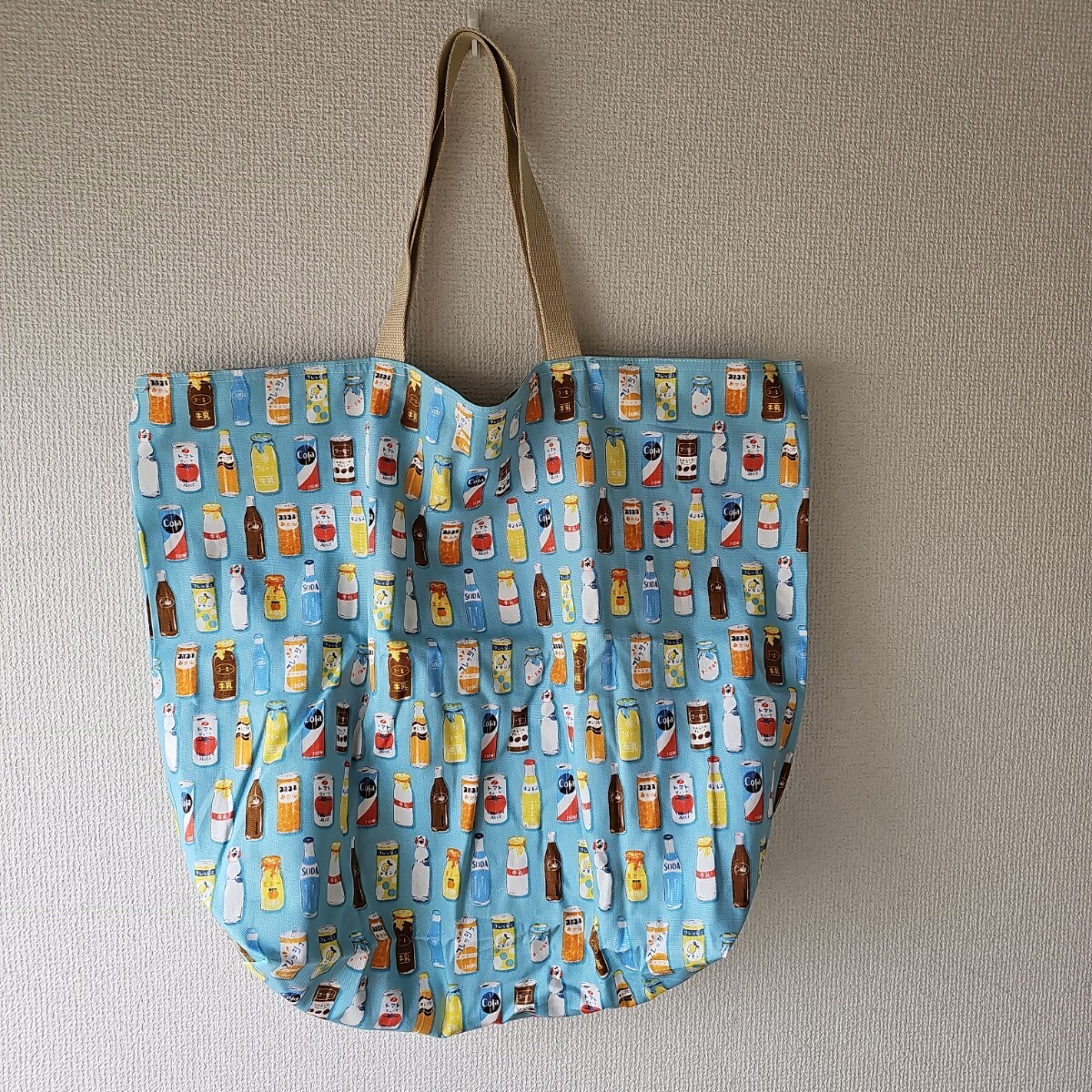 サイズは、高さ42cm、横 上部54cm、底部39cm、マチ15cm、ヒモ49cmです。