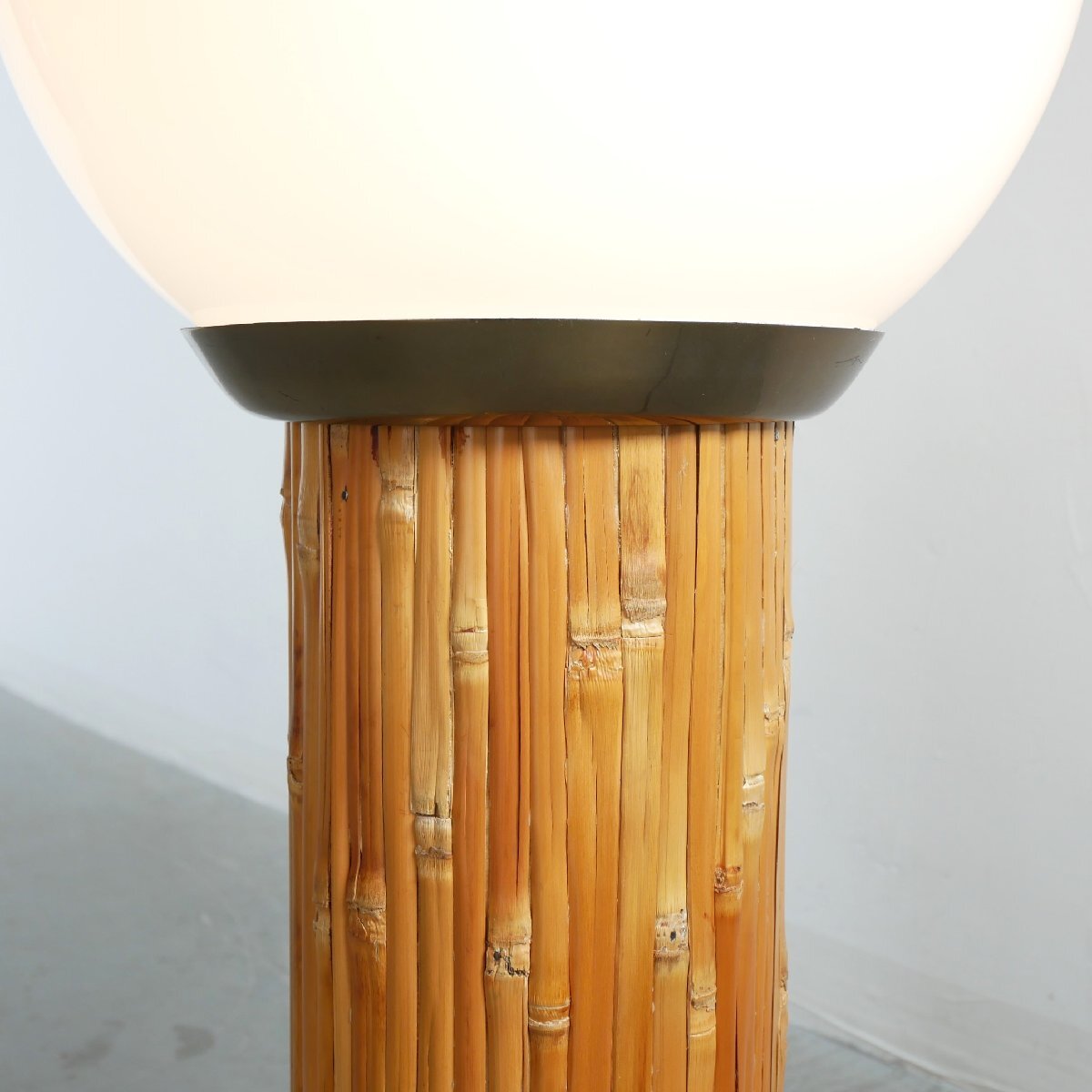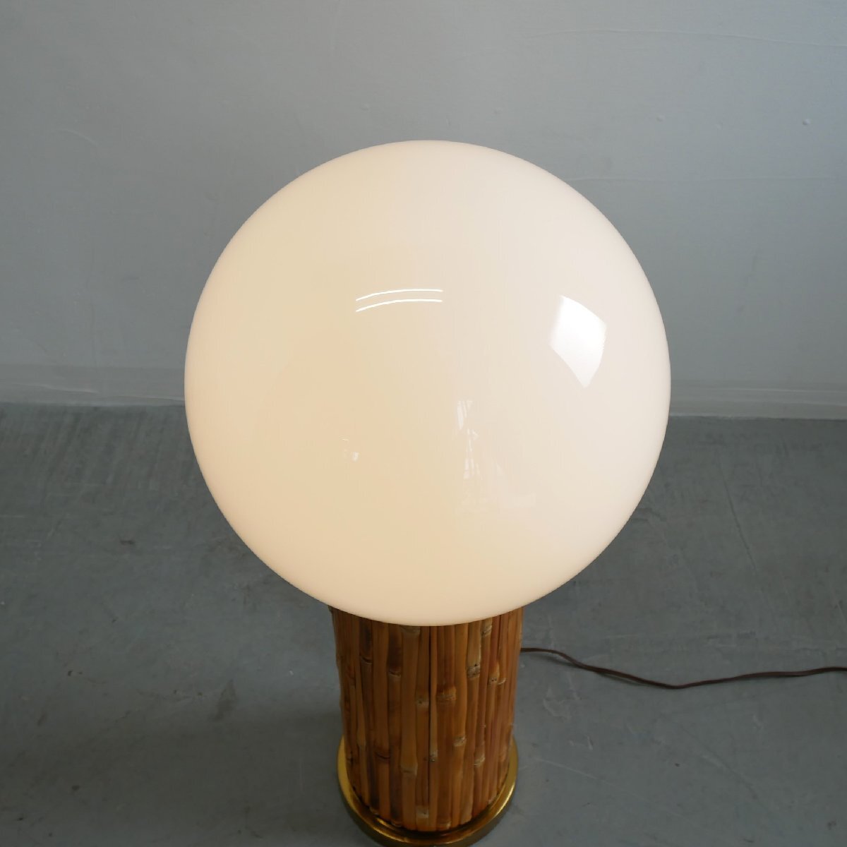 | 商品説明 explanation | 1950年代前後のフロアランプです。 竹素材で巻かれた支柱に、大きな球体のガラスシェードが載っています。 ナチュラルな雰囲気のインテリアなどにいかがでしょうか。 ※電球は日本で市販されているLED(E26,40W相当)を使用しています。 ※スイッチはON,OFFは、各2回づつ回してください。 |