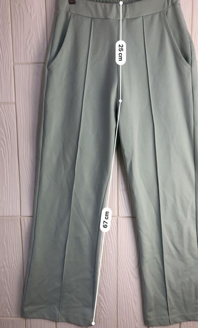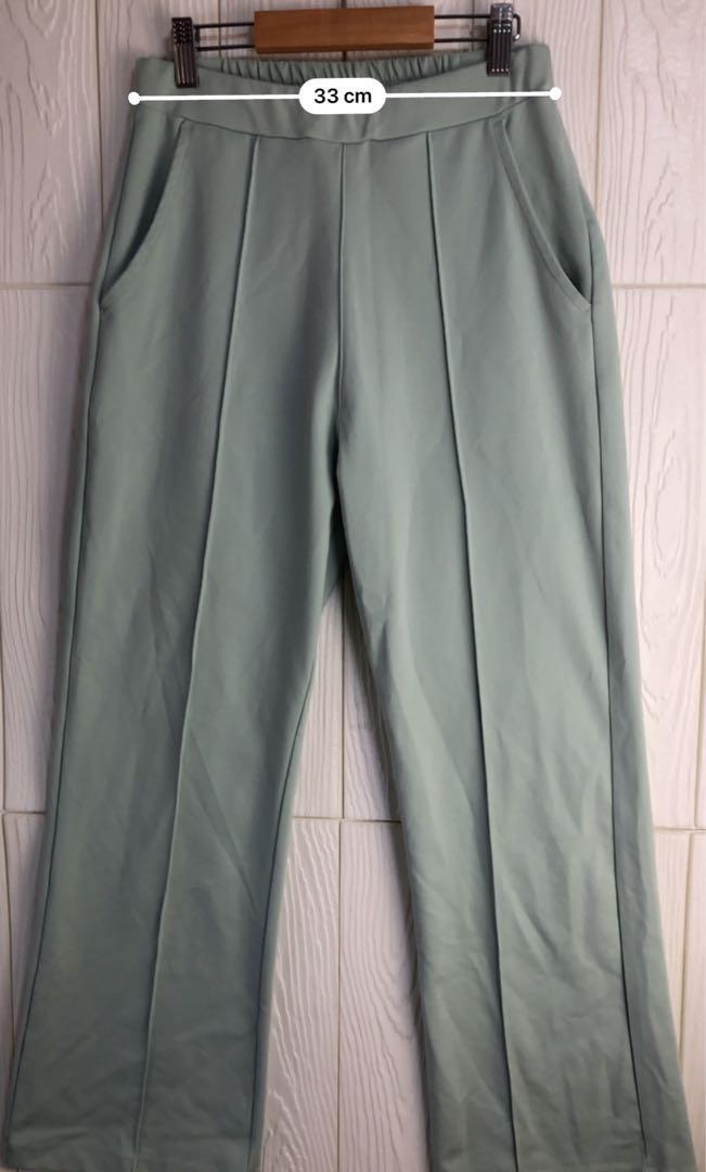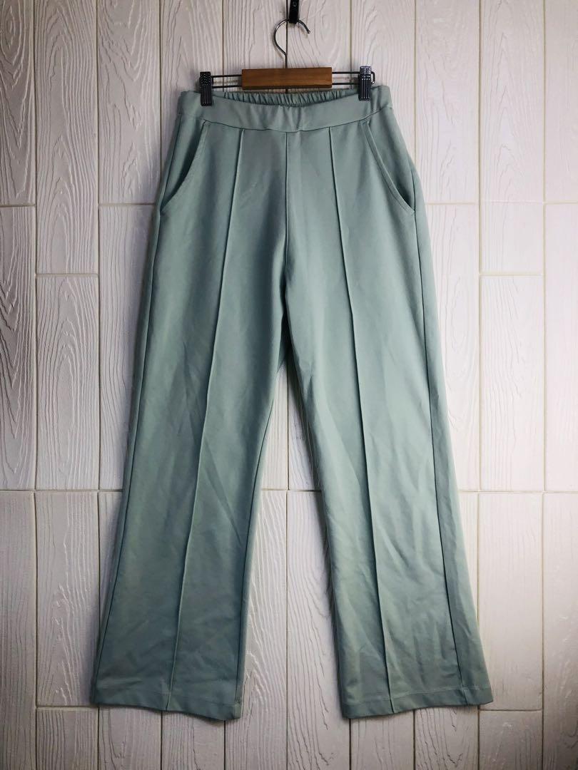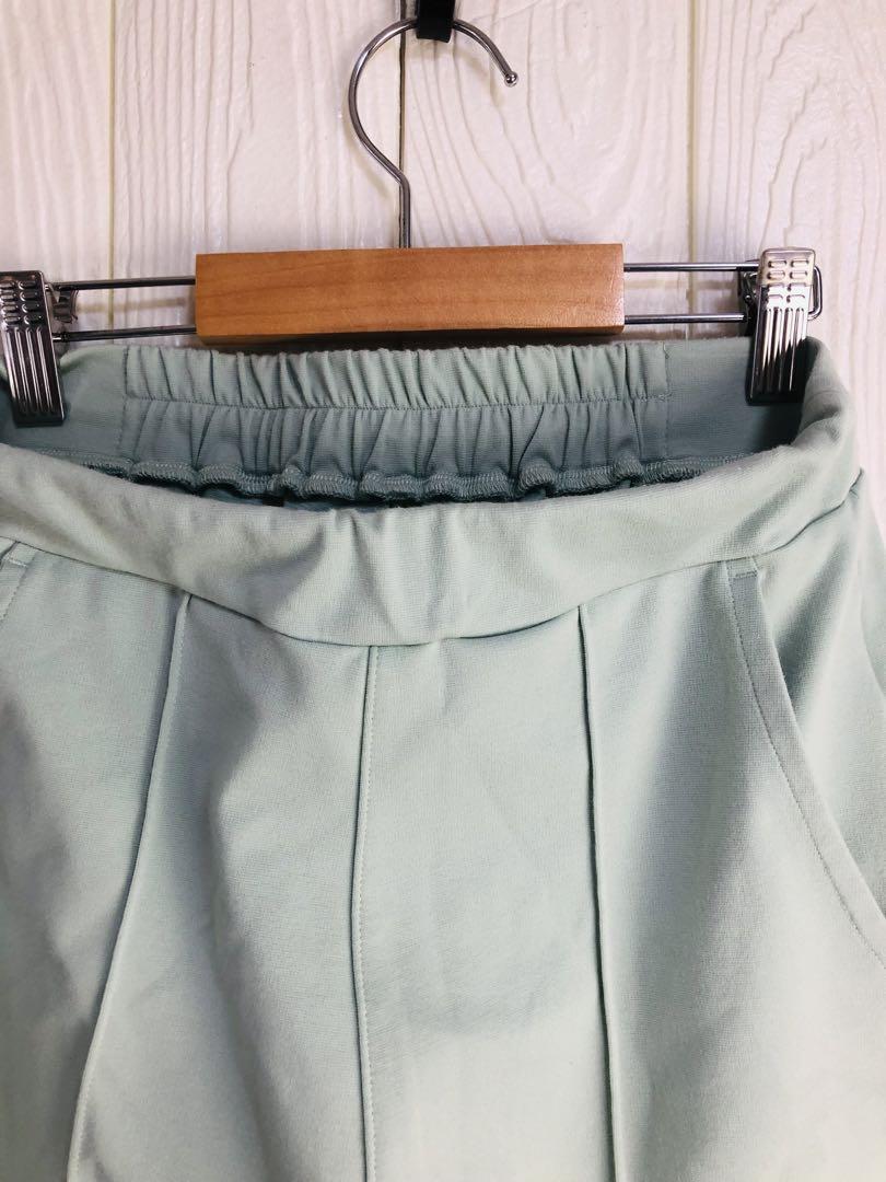 ミントグリーンのスラックス、スタイリッシュなデザインで快適な着心地。