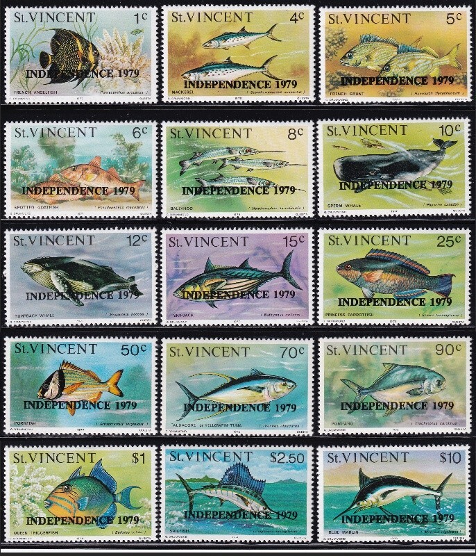 ak6389 セントビンセント 1979 魚 加刷 15種完 #572-86