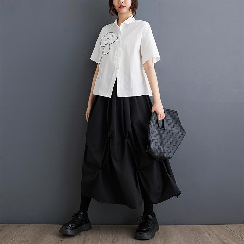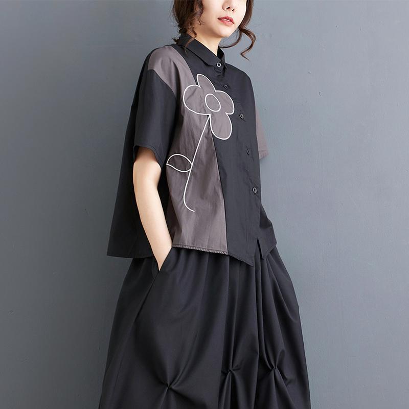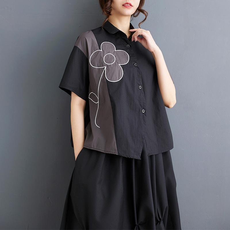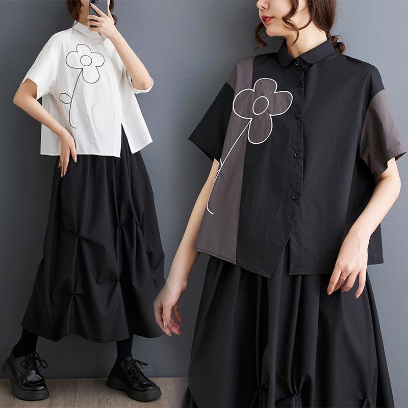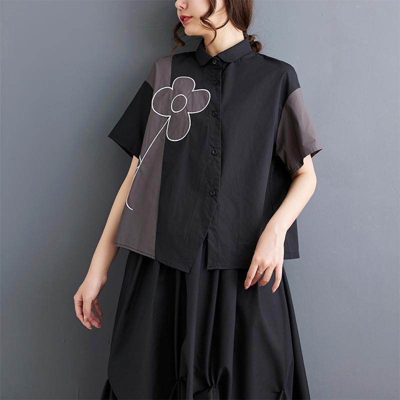 【新品】大きいサイズ夏服花柄半袖ブラウス トップス シャツゆったり半袖 ラージ体型カバー着痩せ細見え