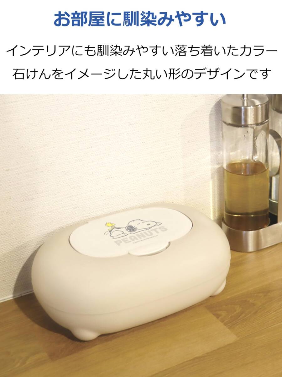 ●丸っこいフォルムが可愛スヌーピーのデザインです。 ●市販のウェットティッシュ・おしりふきをいれる専用ケースになります。 ●ティッシュが一枚ずつ取り出せる、やわらか素材の中フタ付きです。 ●ワンプッシュオープン式でお部屋に馴染む、落ち着いたカラー。 ※完全密閉ではありません。