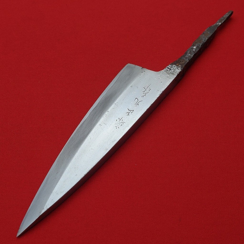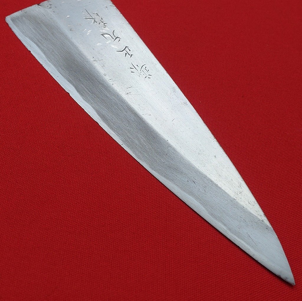 出刃包丁 堺正元作 刃長約180㎜ 峰厚最大約10㎜ 重量約320g 片刃 和包丁 柄無 調理器具 庖丁 刃物 日本製 【1871】