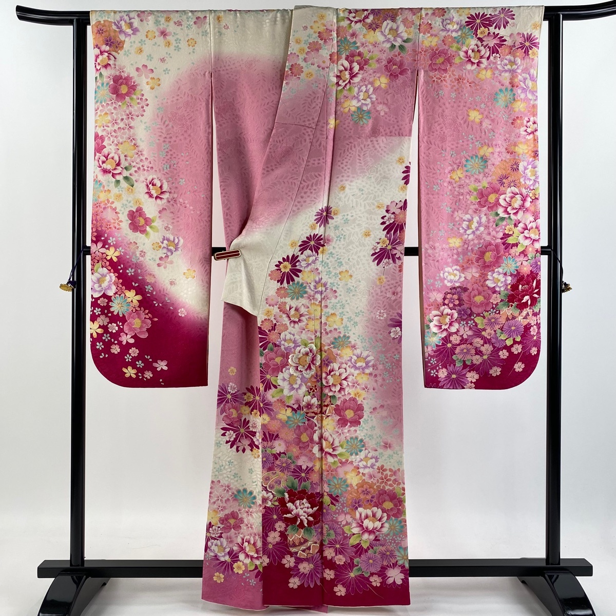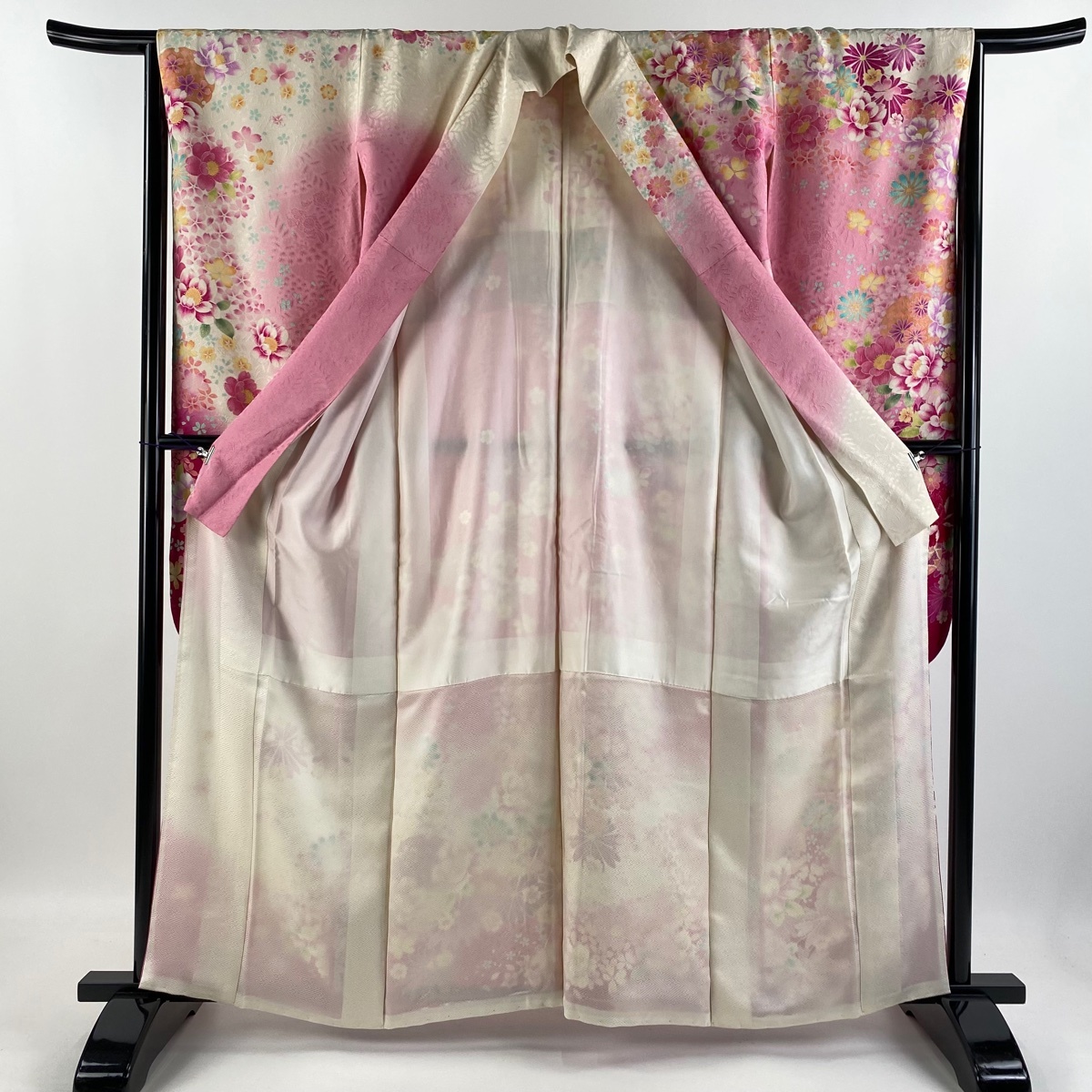 | 振袖 美品 逸品 草花 手鞠 銀通し 金彩 ピンク 袷 身丈162 裄丈64 M 正絹 【中古】 |