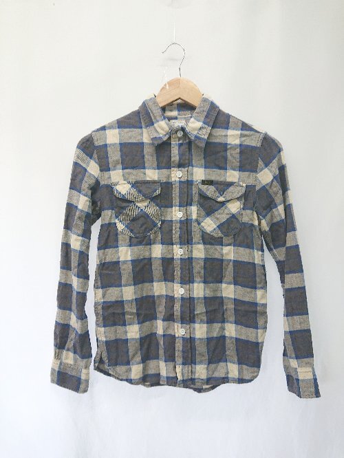 ◇ ⊇ Lee リー チェック柄 長袖 シャツ サイズS ネイビー ベージュ系 マルチ レディース E