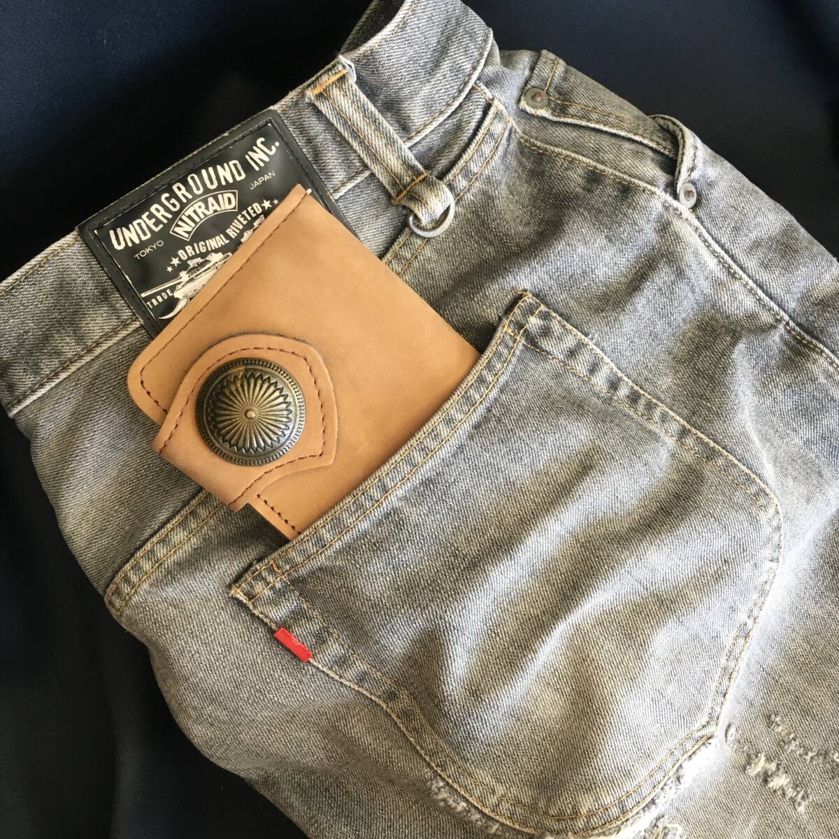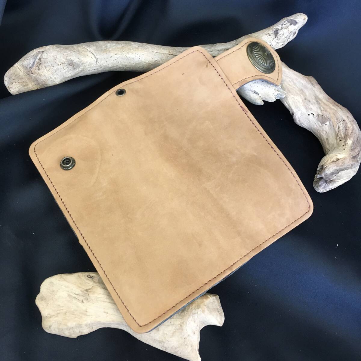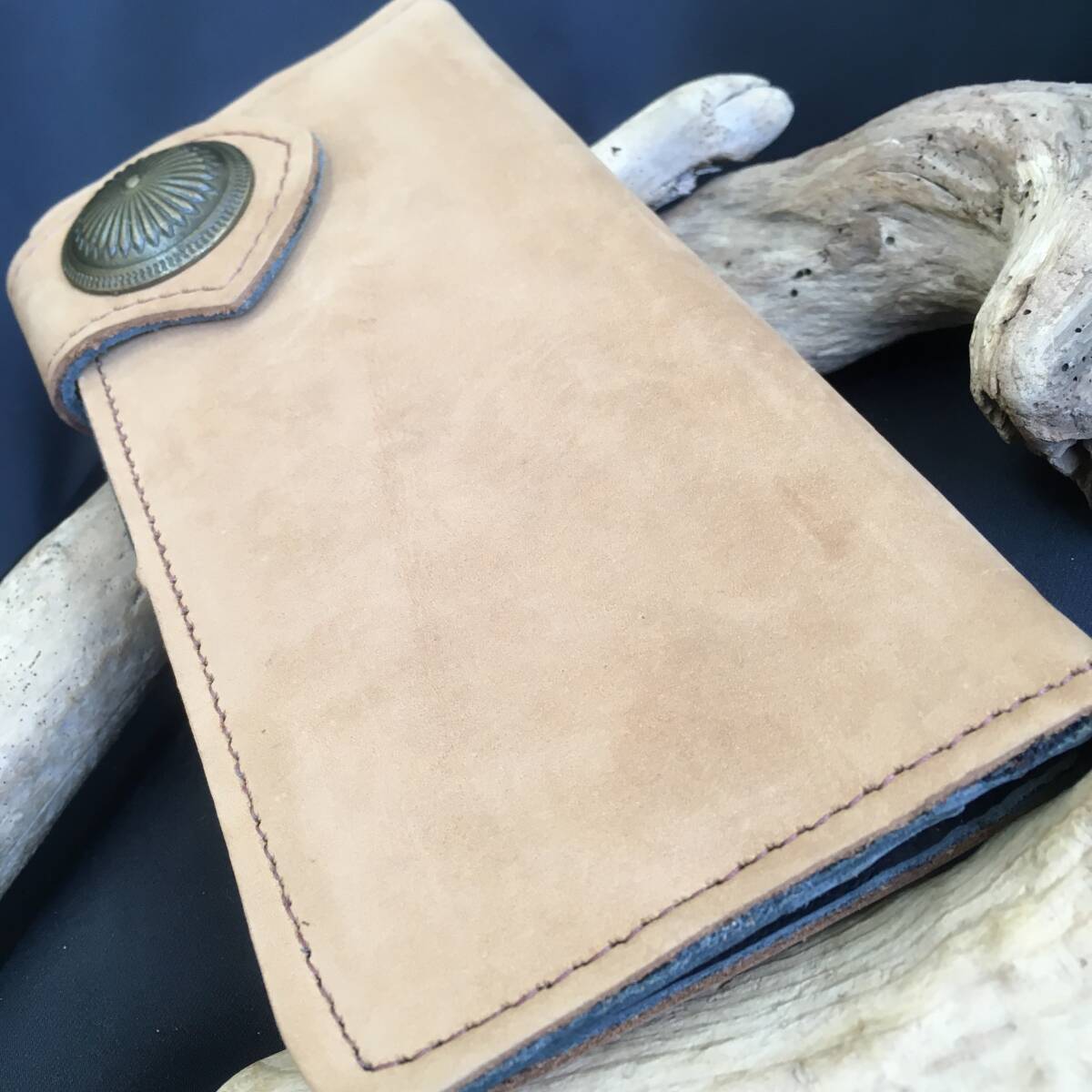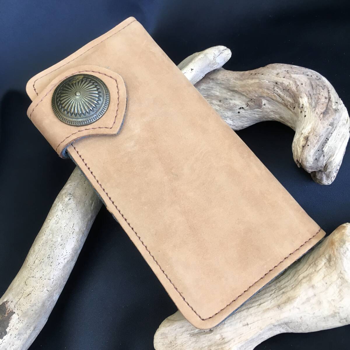 新品 本革レザー コンチョ長財布 メンズ ロングウォレット ブラウン 茶 ヌバック ライダース アウトドア ツーリング バイカーズ 仕事用 55