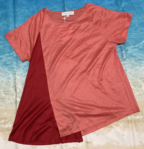 (株)ナイガイ・イムのブランド「PRIMA KASIH」 のアシンメトリーデザインのカットソーです。
