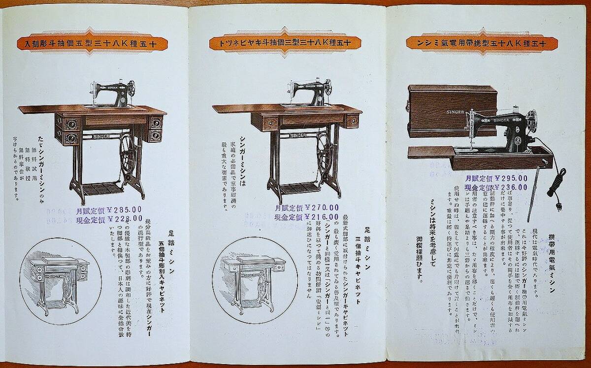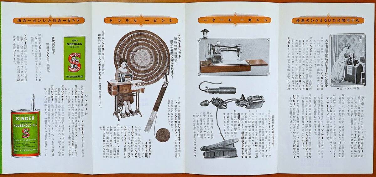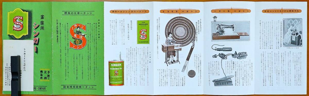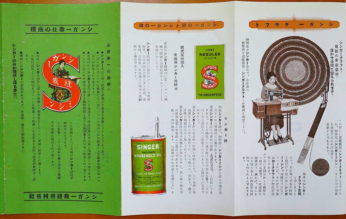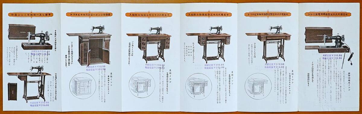 ■シンガー裁縫機械会社発行■発行年代記載なし(戦前) 1枚 六つ折り サイズ開いた状態(約59.5㎝×18㎝) 絶版■経年並。表紙部に名刺貼り付けあり(糊付けされています)。小スレ・薄いヤケ・薄いヨゴレ・角小折れ跡あり。古物へのご理解をいただける方の入札をお願いいたします■ヤマト運輸ネコポス 200円(ポストへの投函・追跡サービスあり・補償なし) ■●自己紹介欄の確認願います。他同時出品あり。●