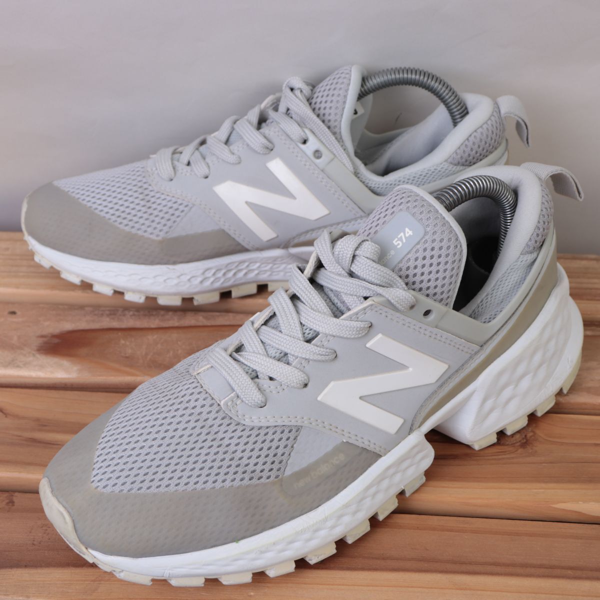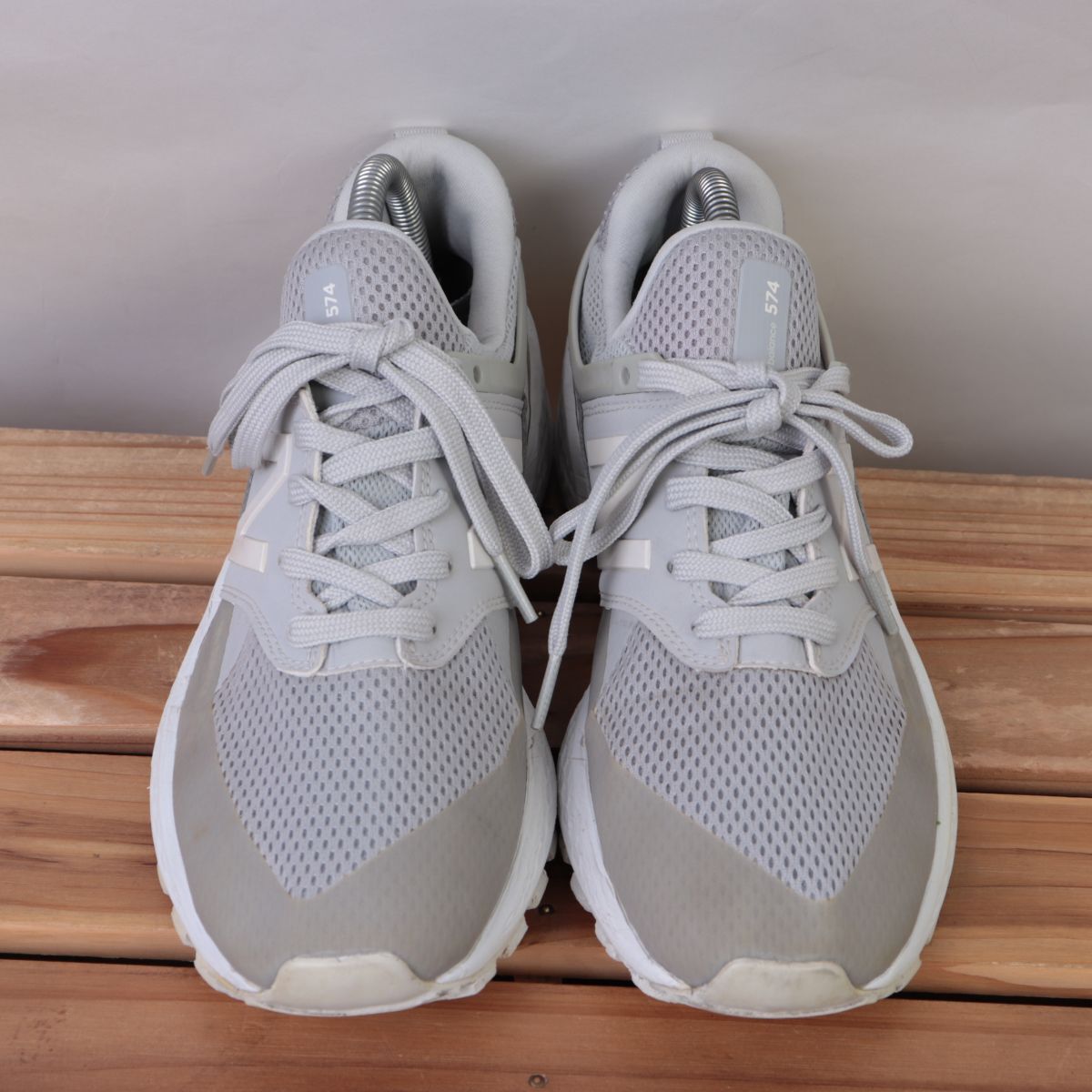 z944【574】ニューバランス US7 25.0cm/灰 グレー 白 ホワイト newbalance メンズ ユニセックス スニーカー 中古