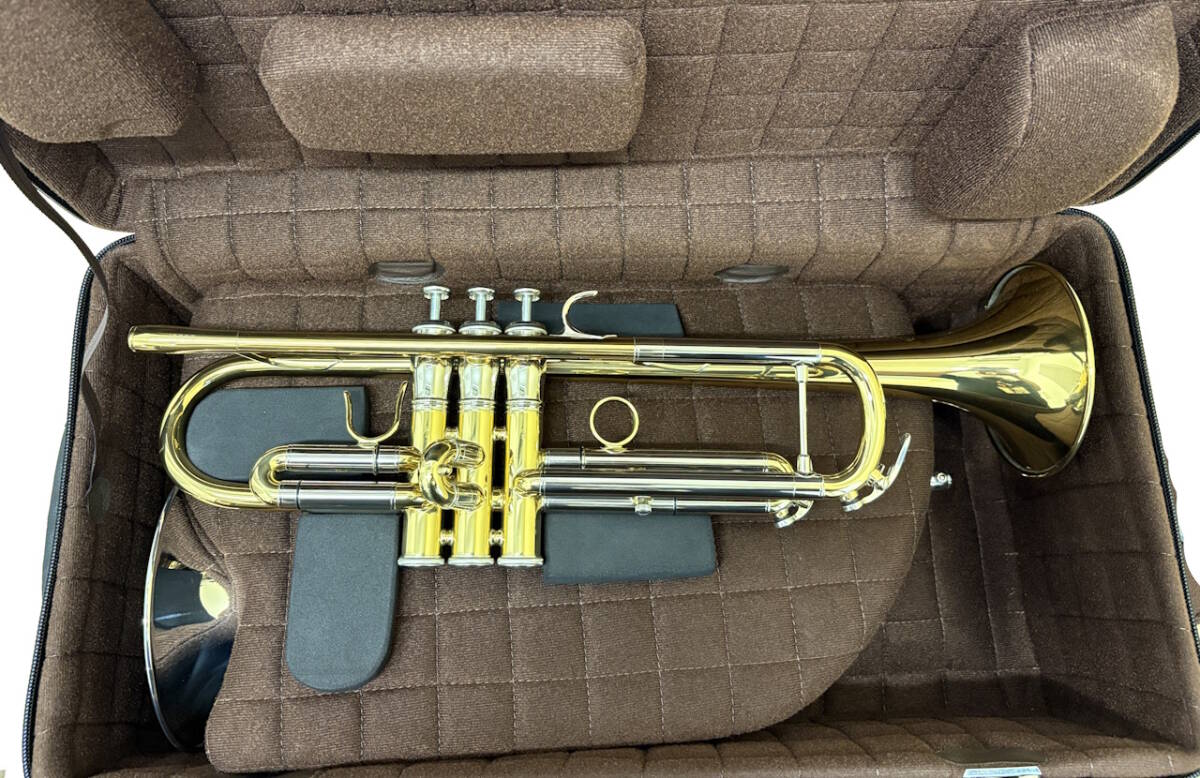 ベル径150mmまでのピストン or ロータリートランペット1本 (またはピッコロトランペットまたはコルネット) と ベル径180mmまでのフリューゲルホルン1本を収納可能です。