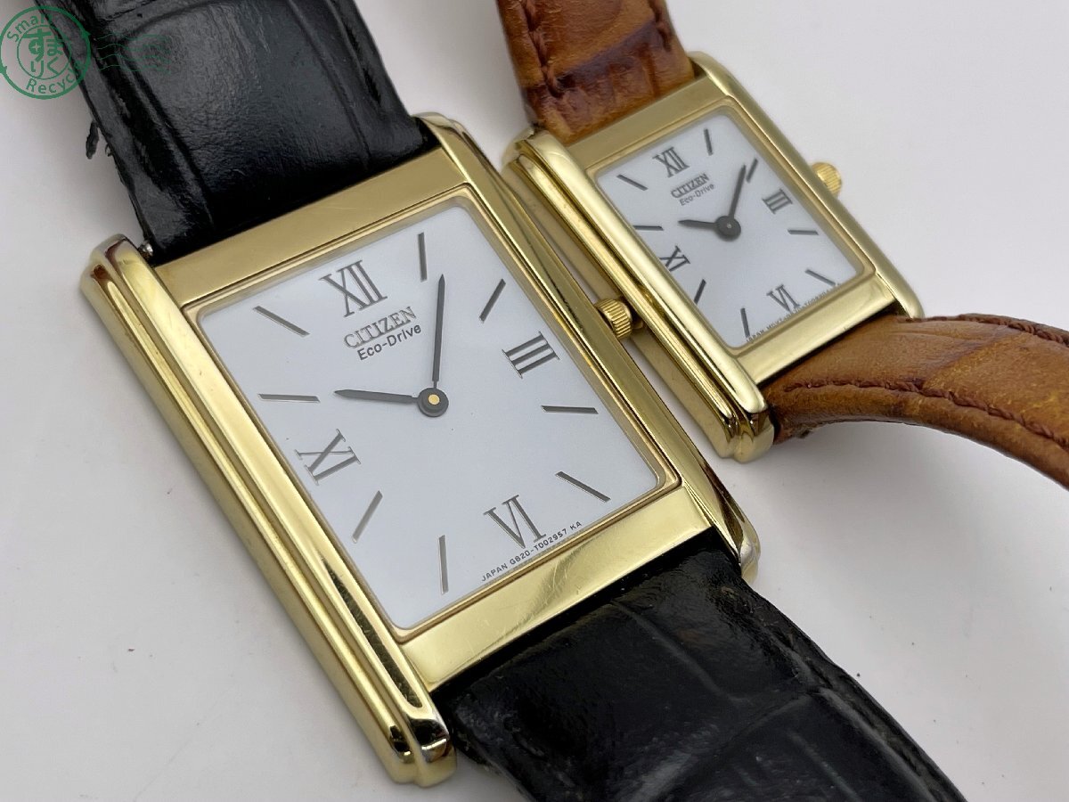 △CITIZEN シチズン G820-T001700 G670-T005284 エコドライブ ペアウォッチ スクエア 腕時計 ゴールド系 稼働 中古 | |||