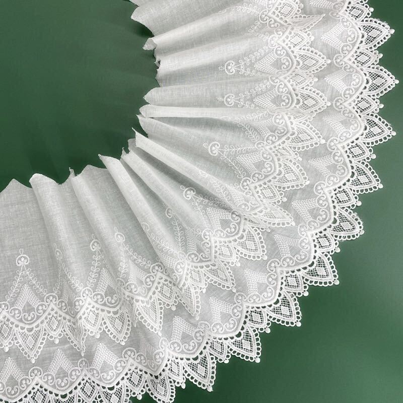 モチーフと刺繍がとても綺麗な薄手のコットンレース。