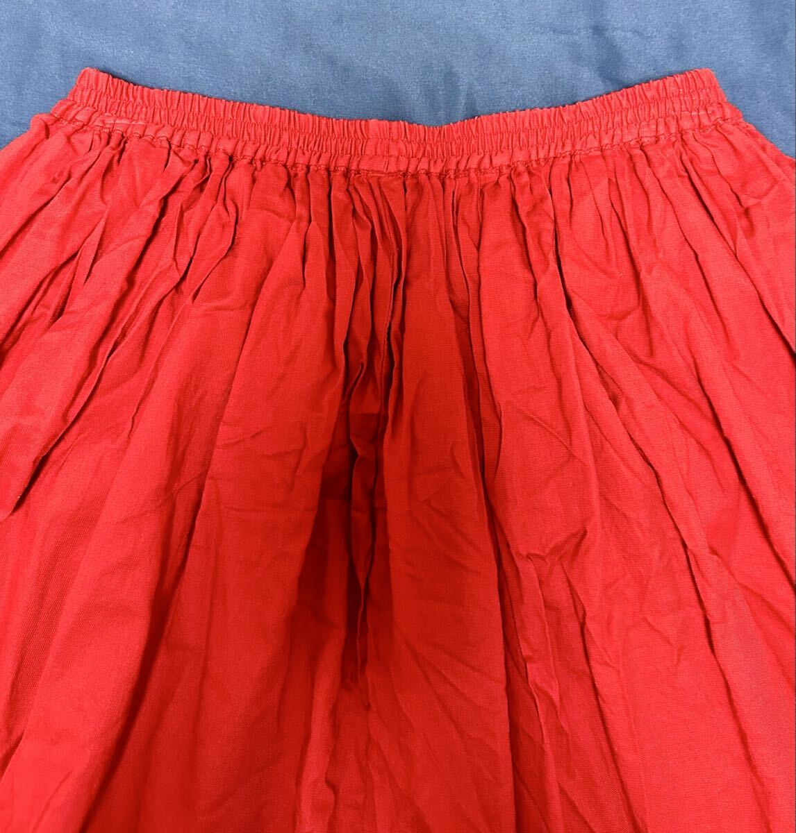 赤の膝丈フレアスカートです。