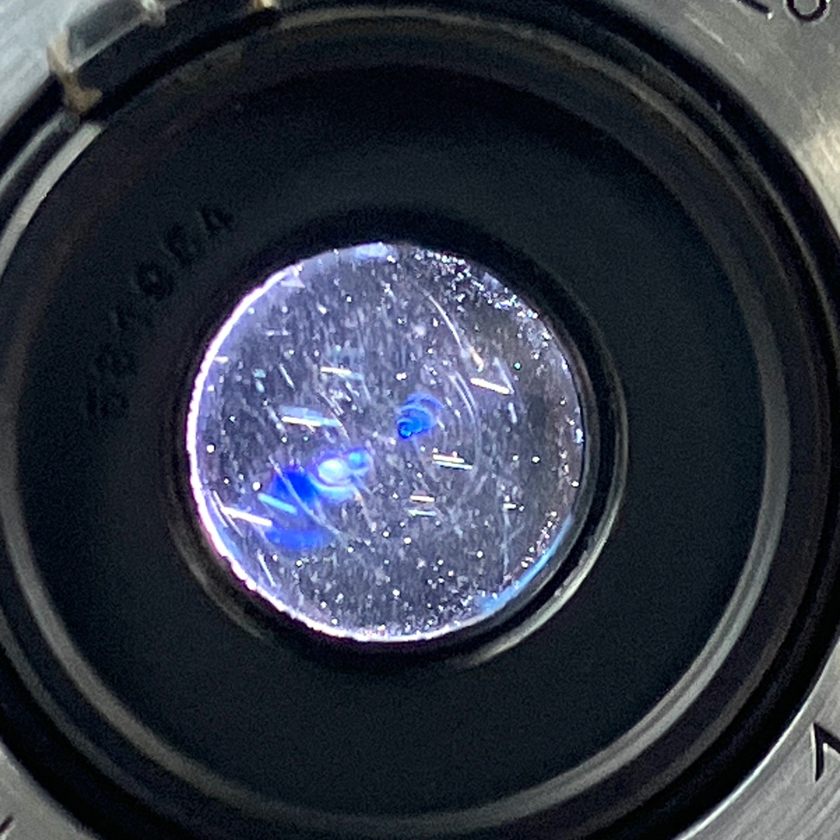 【外観】 スレやキズ、汚れや絞り羽根に油染みがあります。 【光学系】 レンズ内部にクモリやキズ、ホコリの混入があります。 ※バルサム切れやコーティング剥がれ等、クモリの原因は特定できかねます。 【動作】 レンズの動作に問題はありません。 ※レンズフィルター(Leitz Filter A36)が付属します。 ※付属品にスレやキズ、汚れや塗装剥がれがあります。 |