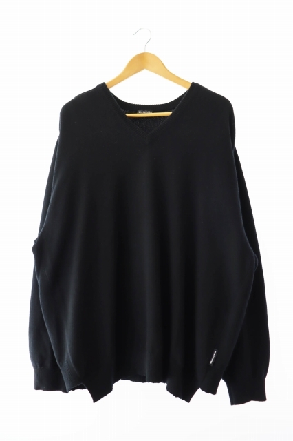 バレンシアガ BALENCIAGA 22SS カットオフ加工 オーバーサイズ Vネック カシミヤ ニット セーター M 黒 ブラック ブランド古着ベクトル ☆AA★ 250805