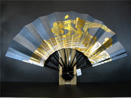 舞扇子 A295 黒天ぼかし シルバー引き 金箔桜流水 【箱なし】