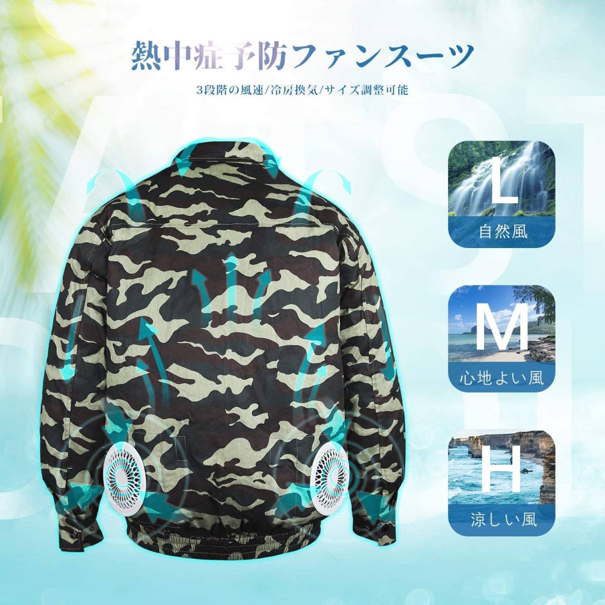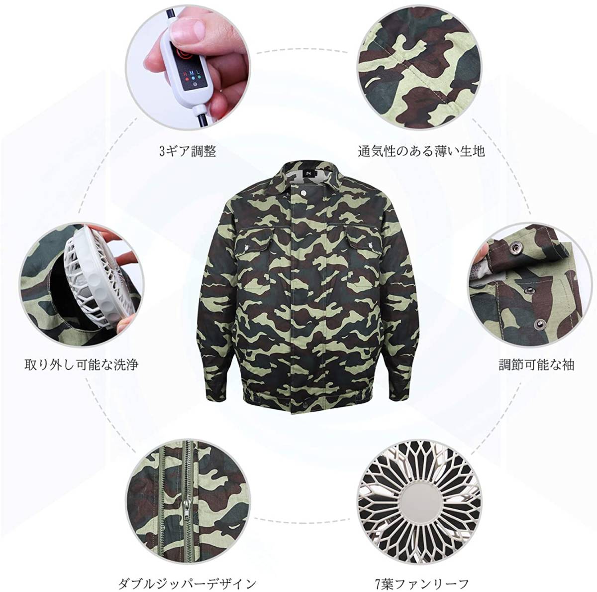 【カモフラージュ】空調作業服 熱中症対策 扇風機 長袖 薄手 UVカット吸汗速干 低騒音超軽量 強い動力 紫外線対策 USBケーブル 現場工事