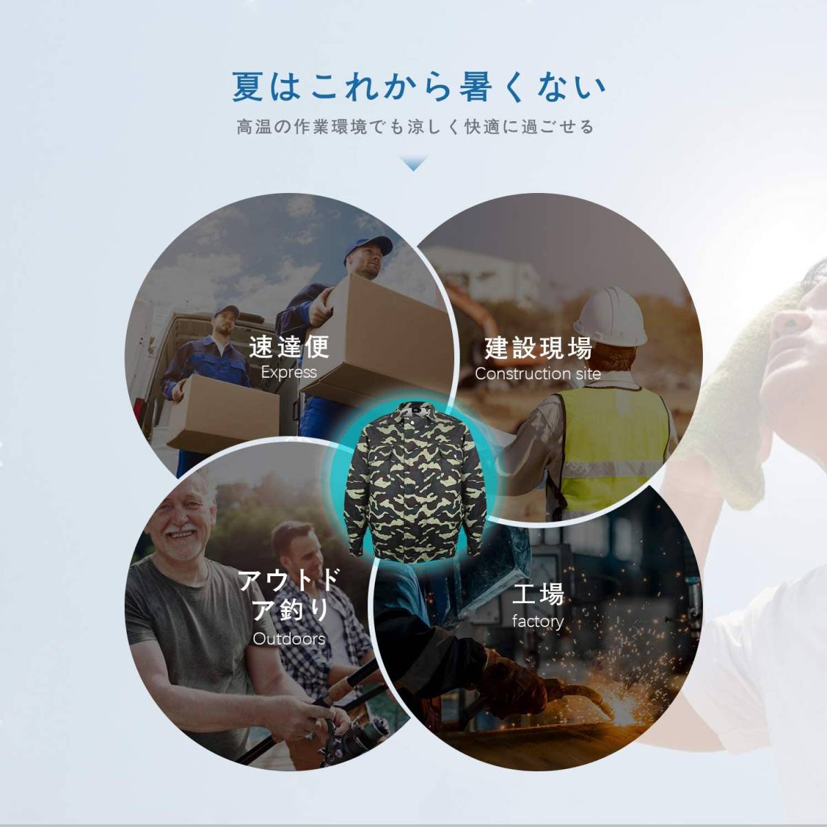 • 【強力なファン&調整可能な風速】空調服は強力なファンが装備されており、外気を取り入れ、体の表面に大量の風を流すことにより、汗を蒸発させて気化熱で体を冷やし、涼しく快適に過ごさせるための商品です。そして使用季節に応じて、調整可能な3段階の風速がありますので、春と夏に適しています。空調風神服はモバイルバッテリーで動くため、外出中でも電源の問題を心配する必要がありません。(本製品にバッテリーは付属していません)