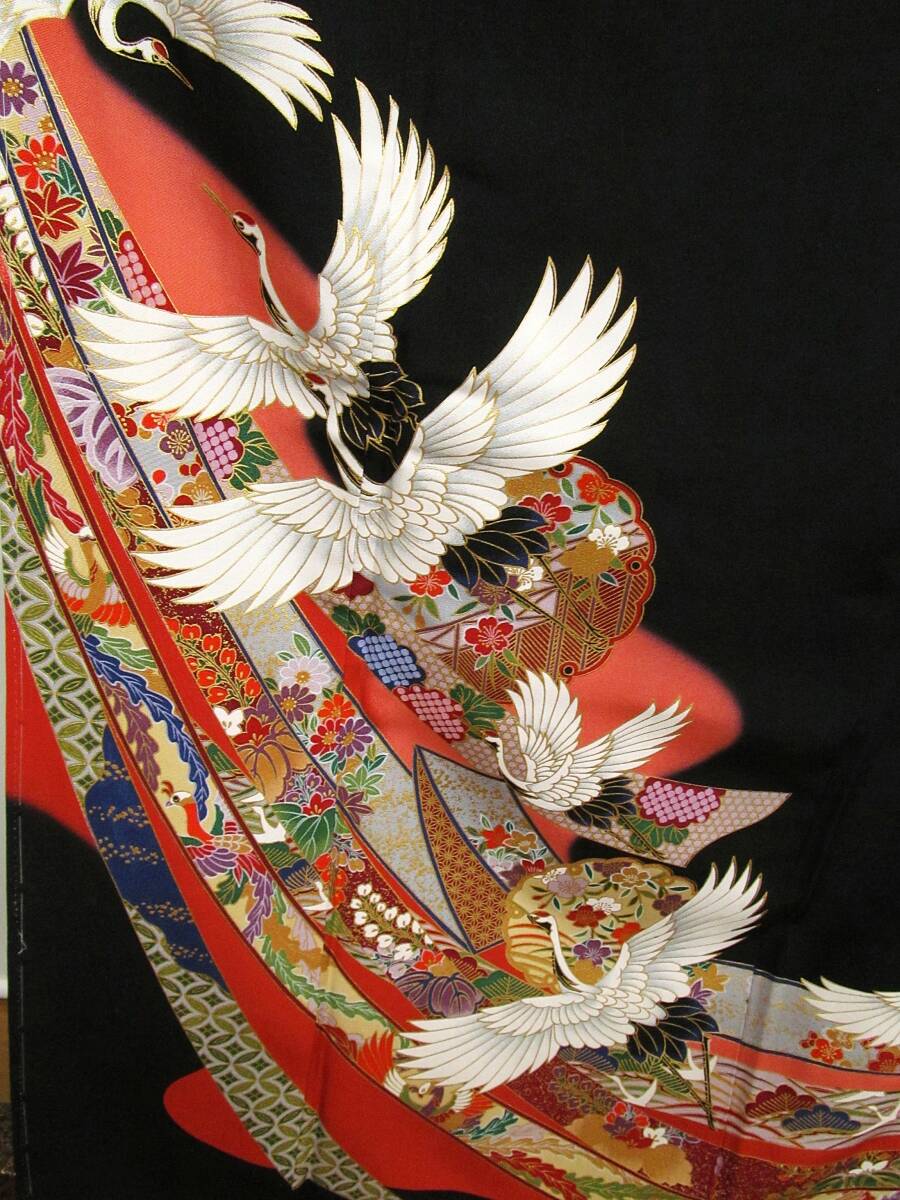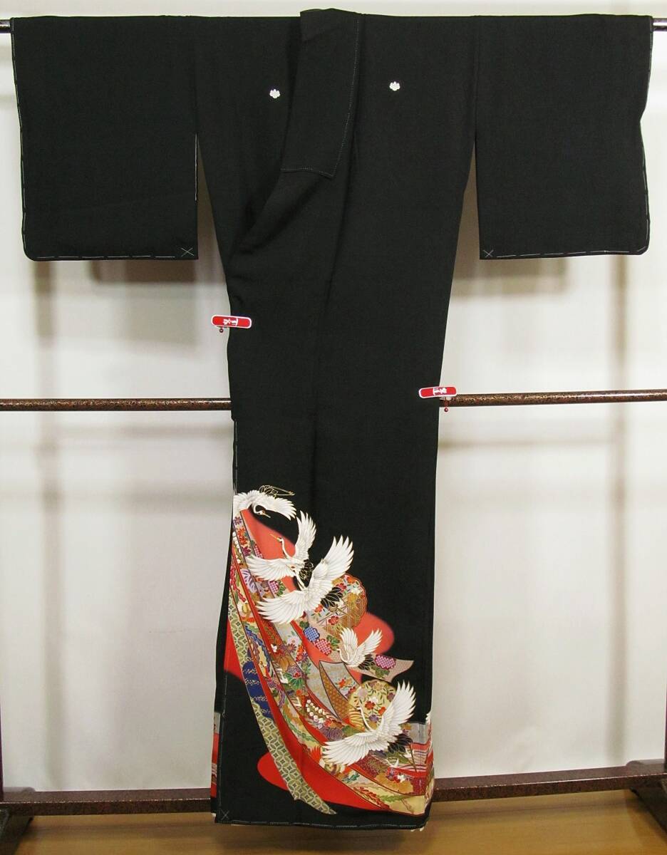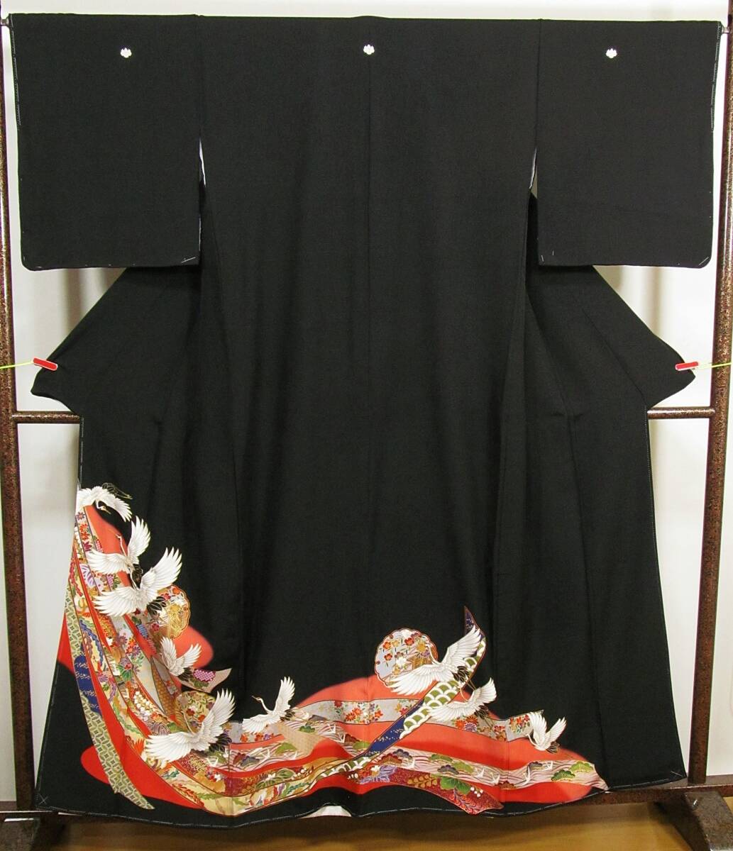 は27 材質不明 留袖 鶴熨斗雪輪花柄 身丈160cm