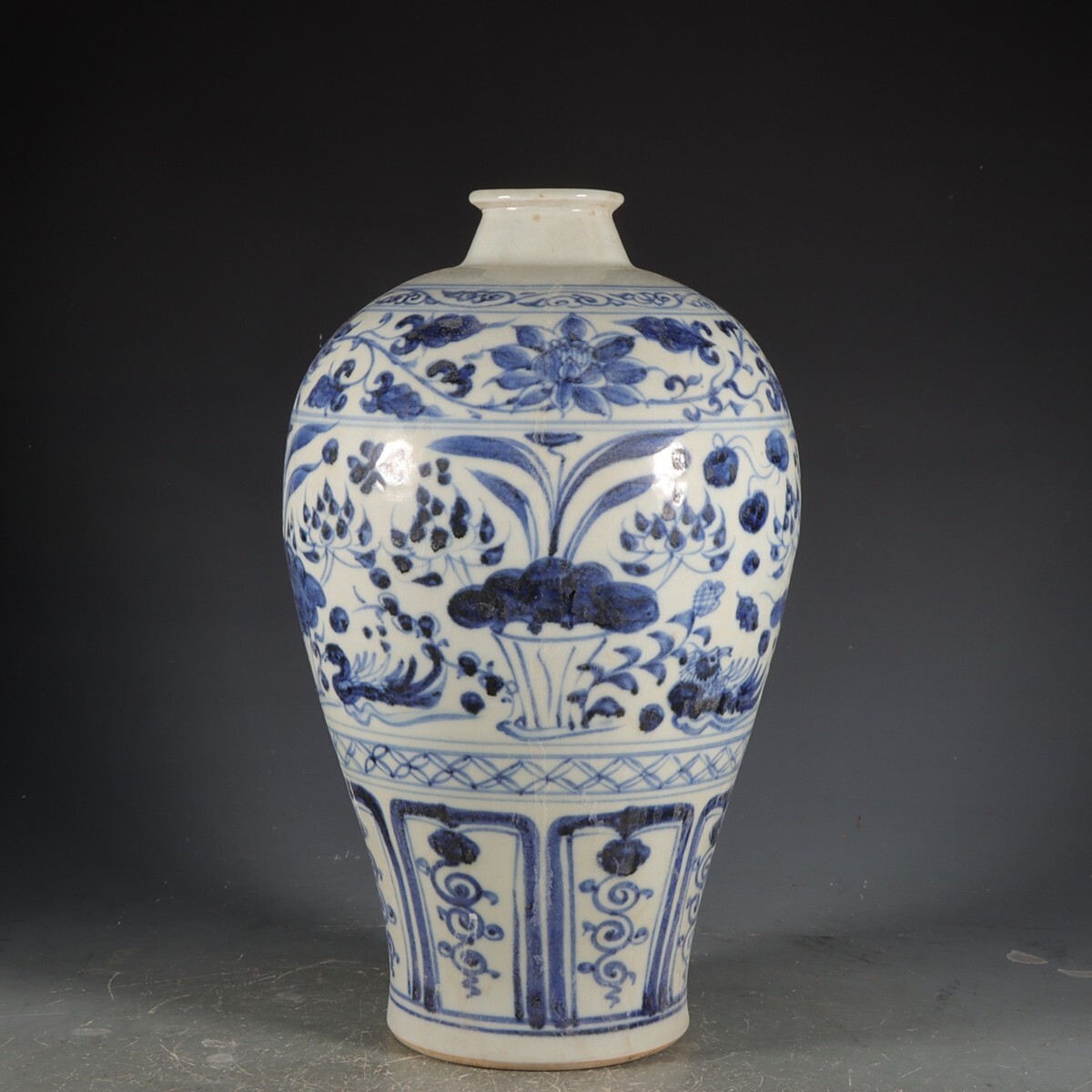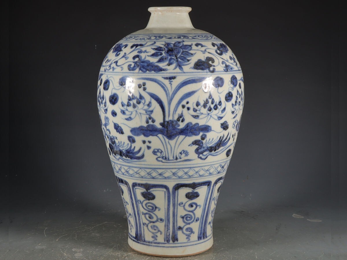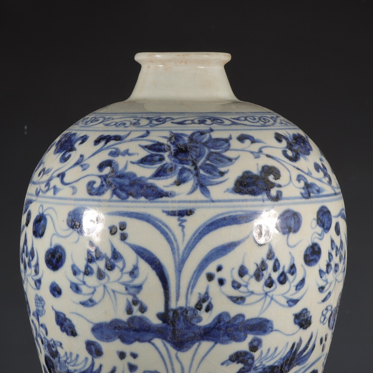 「元代 陶磁器 青花蓮池鴛鴦紋 梅瓶」染付 置物 擺件 古賞物 中国古美術 旧蔵出