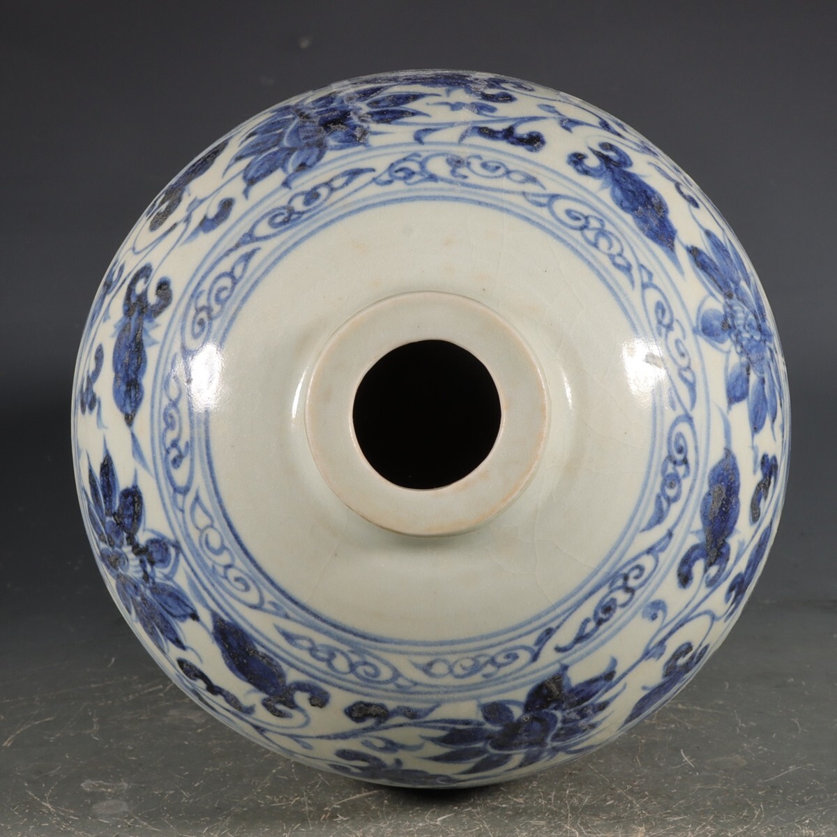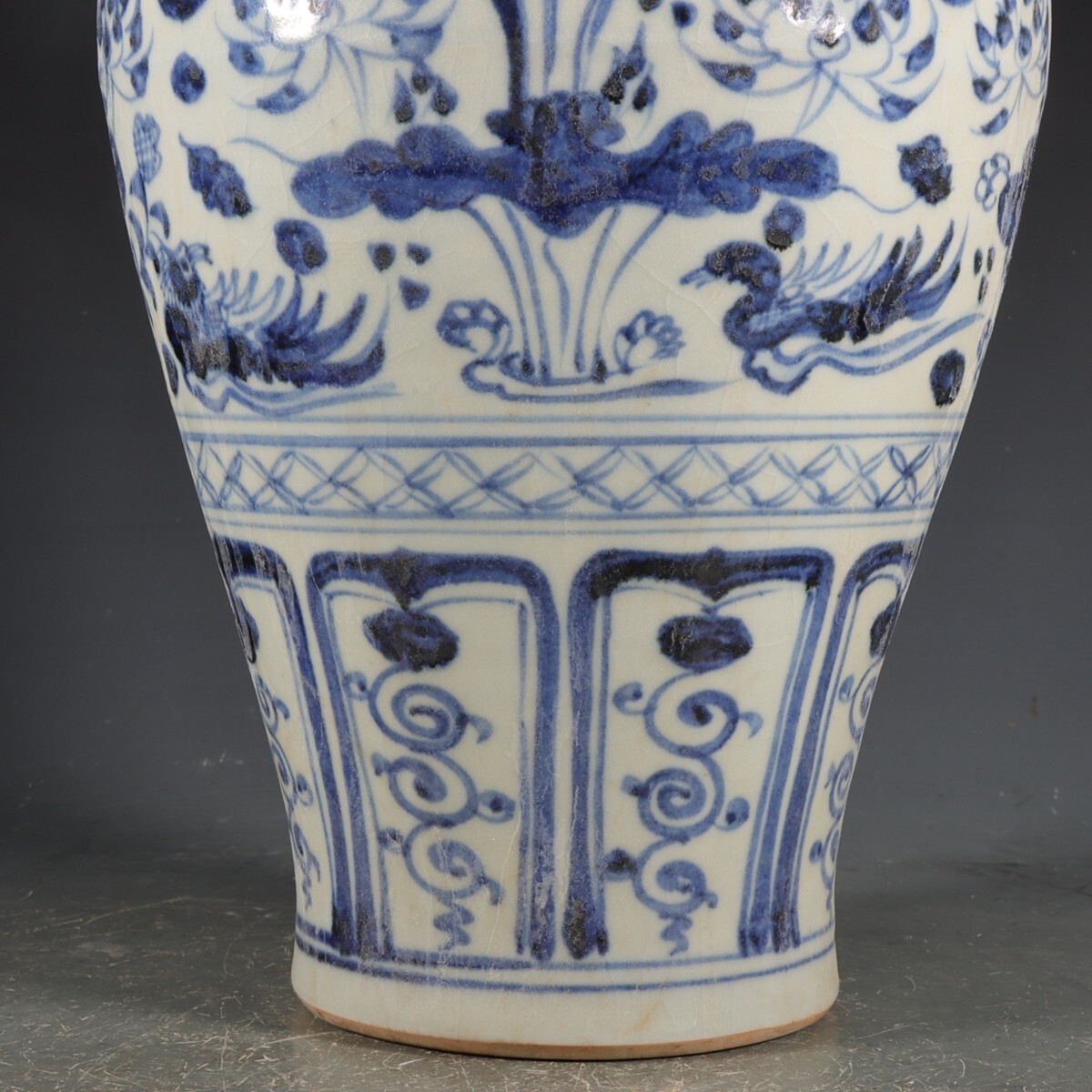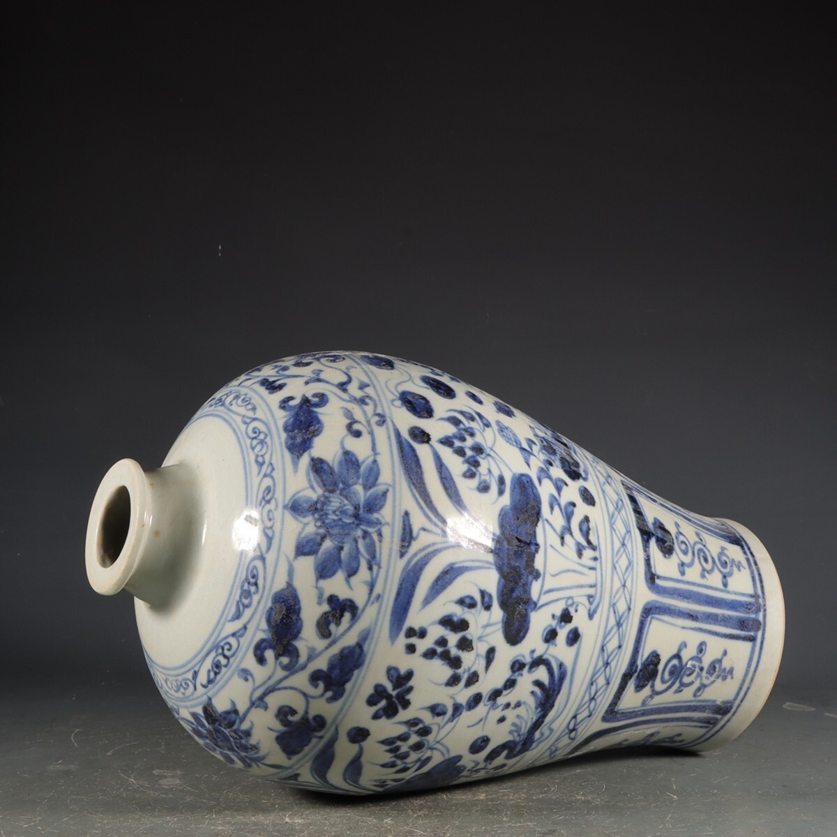 「元代 陶磁器 青花蓮池鴛鴦紋 梅瓶」染付 置物 擺件 古賞物 中国古美術 旧蔵出