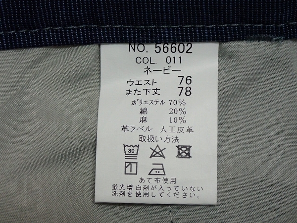 | 表記 76 実寸 ウエスト76cm 股下76cm 股上27cm わたり30cm 裾幅20cm 多少の誤差はご了承下さい。 | |