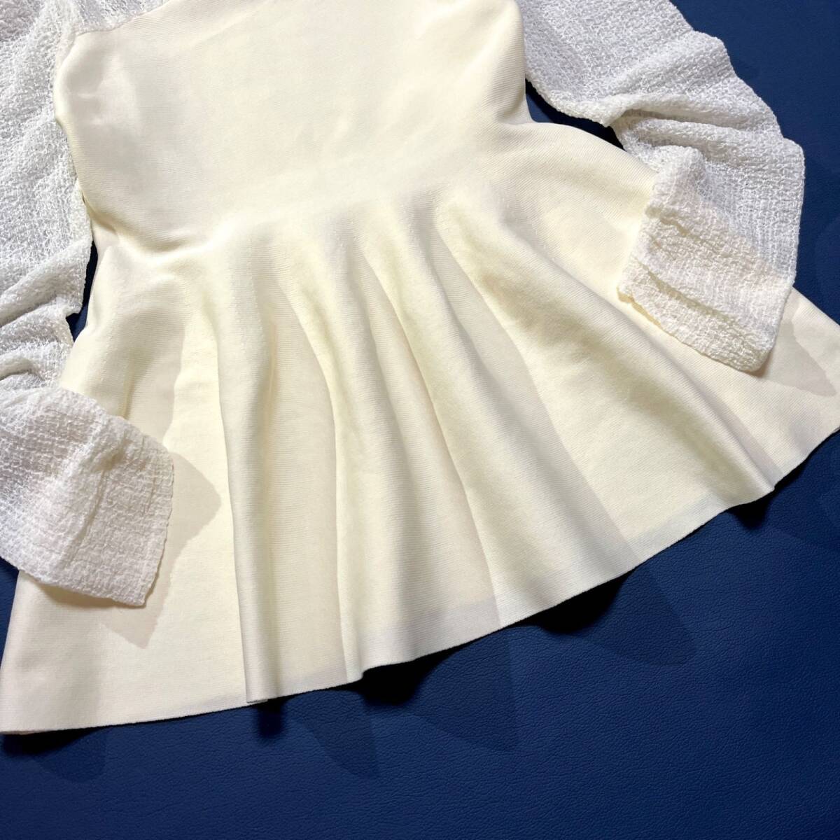 2023AW シュリンクシアードッキングニット ドッキングトップス ペプラム レース 刺繍 カットソー 長袖 バックボタン シアー 秋春ニット プルオーバー