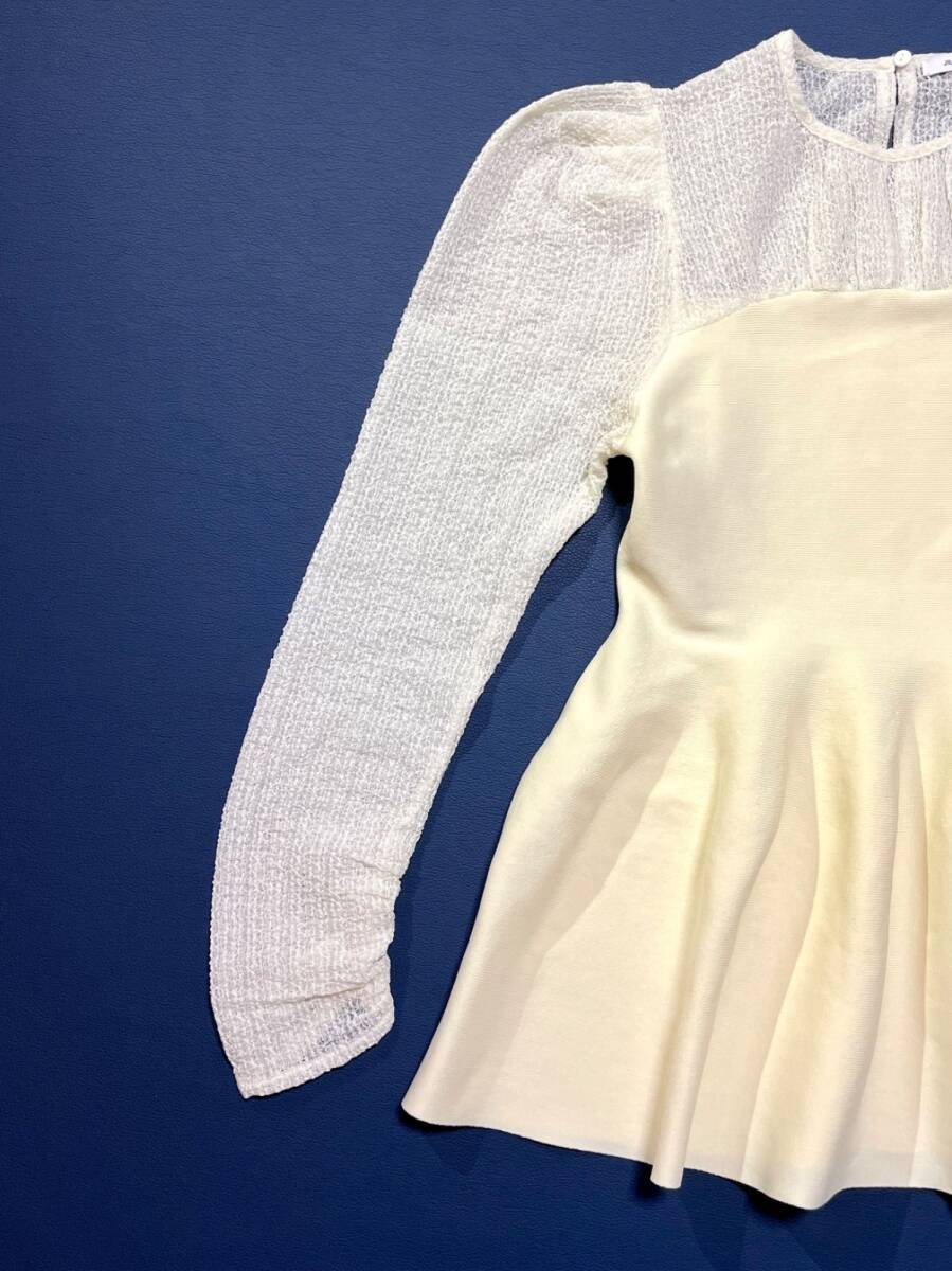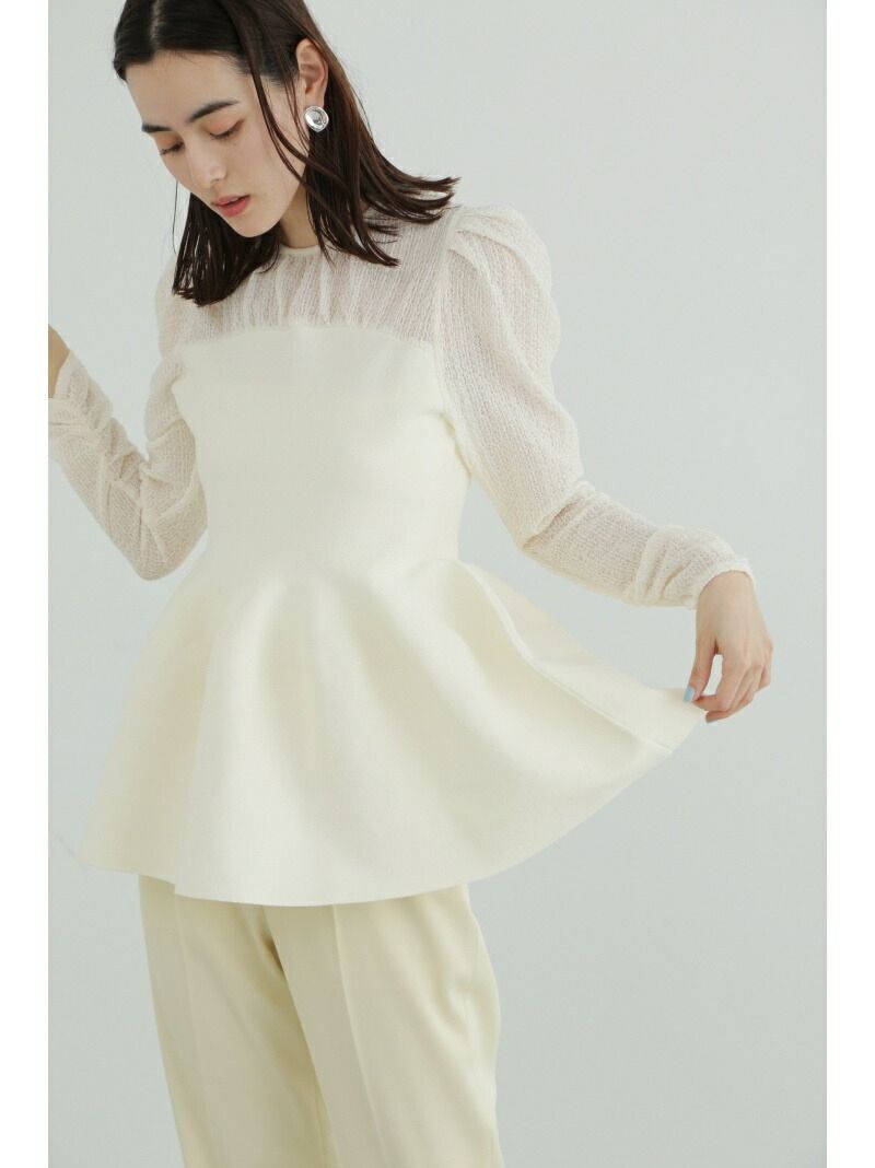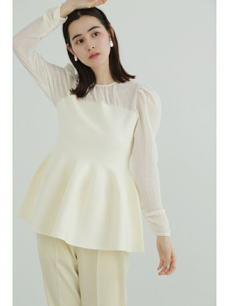 <やや透け感のある繊細なシュリンクレースとニットをドッキングしたペプラムトップス>