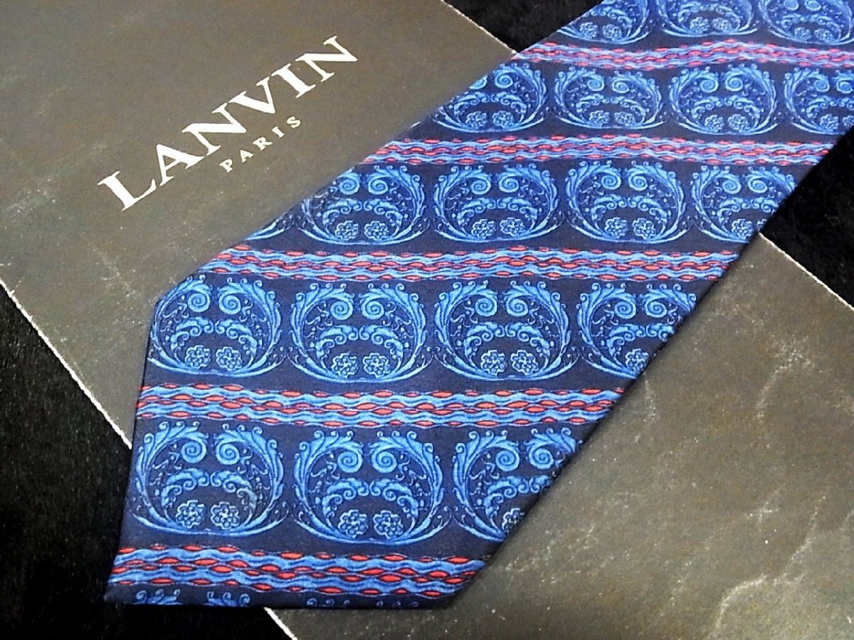 ♪今週の特売980円~♪2764♪状態並品【LANVIN】ランバン【花 葉っぱ 植物 柄】ネクタイ♪