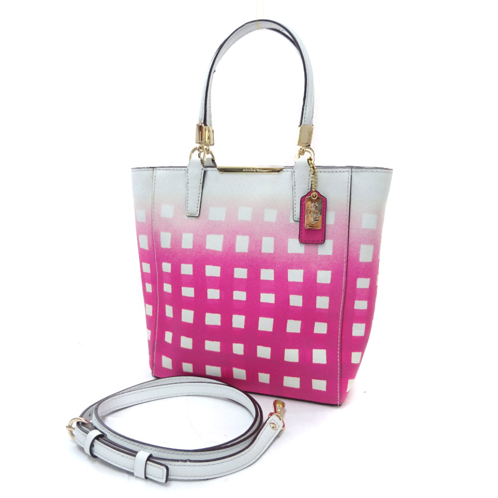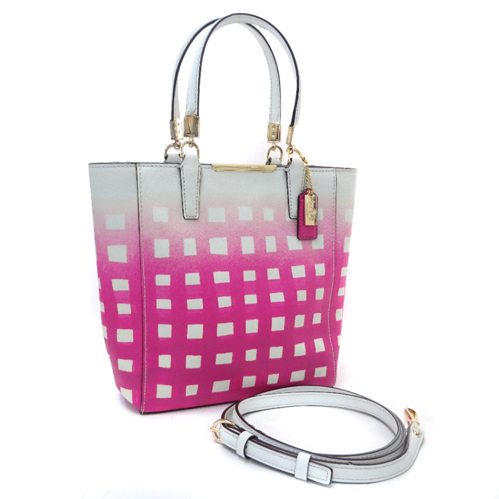 コーチ マディソン ギンガム グラデーション 2way ハンドバッグ レディース レザー ピンク ホワイト 30136 中古 COACH