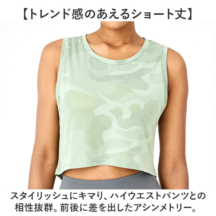 | 商品説明 | ・・【エクササイズのお供にぴったり】 ・ヨガやピラティス、ランニングなどを快適に◎「レディース用タンクトップ」。 ・【トレンド感のあえるショート丈】 ・スタイリッシュにキマり、ハイウエストパンツとの相性抜群。前後に差を出したアシンメトリー。 ・【動きを妨げずアクティブに!】 ・サラリと軽く、伸縮性もプラス。どんな動きにも対応でき、締め付けもなくストレスフリー。 ・【腕まわりゆったりタンクトップ】 ・腕まわりも余裕のあるシルエットで、大きく腕を動かしたり伸ばしたりするシーンもラクラク。 ・【ムレにくく、洗濯後もすぐに乾く】 ・通気性の高いメッシュ生地。汗をかいてもべたつかず、洗濯した後も速乾性ばっちり。 ・【程よくカジュアルなカモフラ柄】 ・主張しすぎず、着こなしやすいカモフラ柄。スポーツブラ等の上に重ねて、コーディネート☆ |