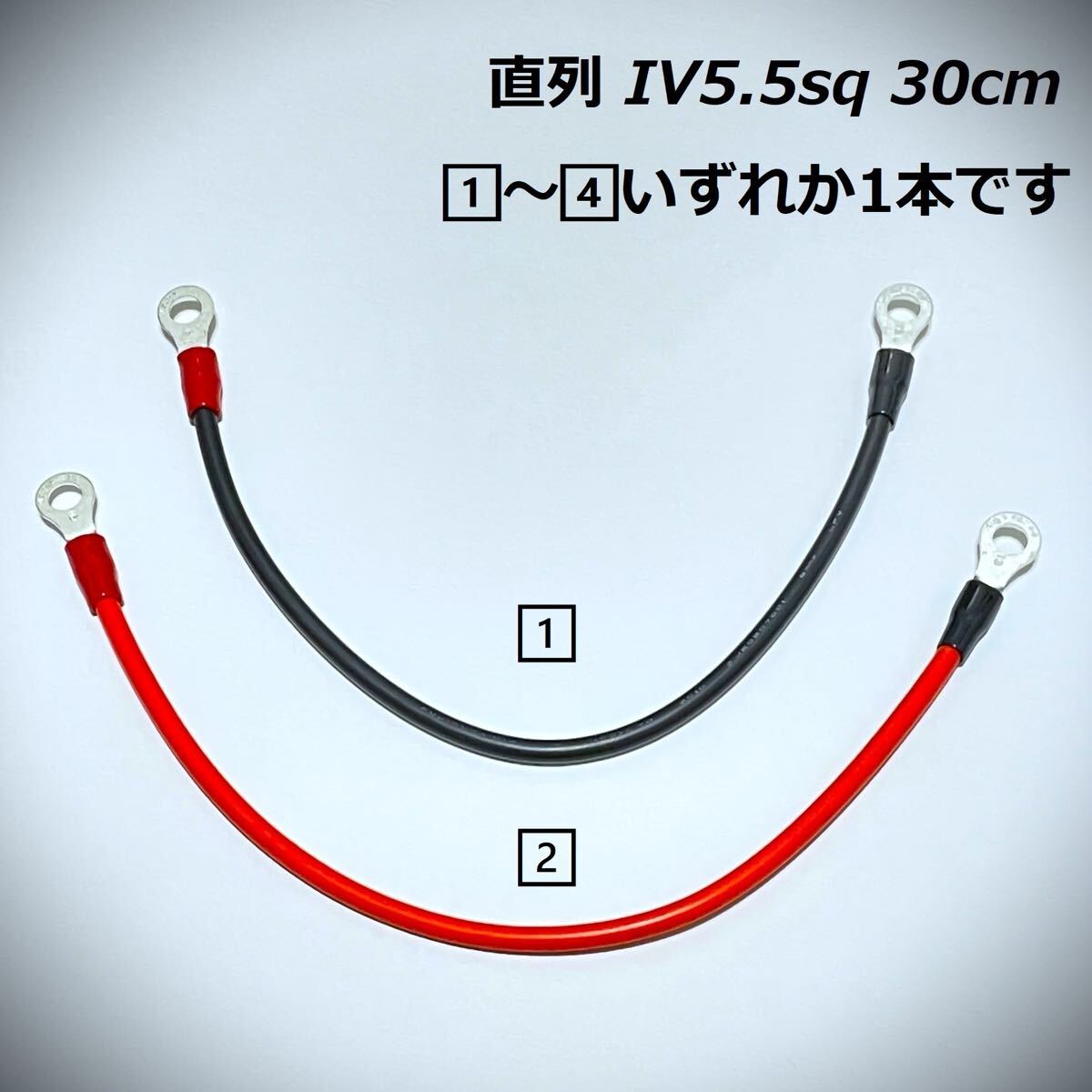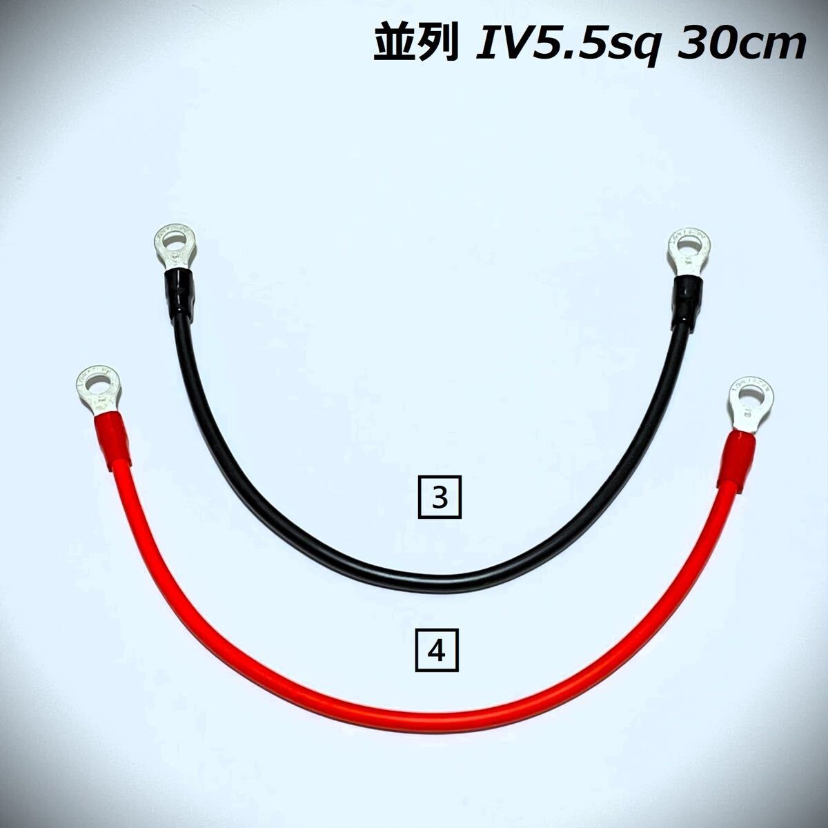 バッテリー2つを繋ぐジャンパーケーブルです。IV5.5sq、許容電流49A、ケーブルの直径は5mm、長さ約30cmになります。端子は6mmか8mmからお選び頂けます。基本は8mmで発送致します。6mmが希望の場合は購入と同時に速やかに変更希望のコメントを頂けたら6mmに変更致します。電気工事資格者による自作品になります。(写真は参考商品です)