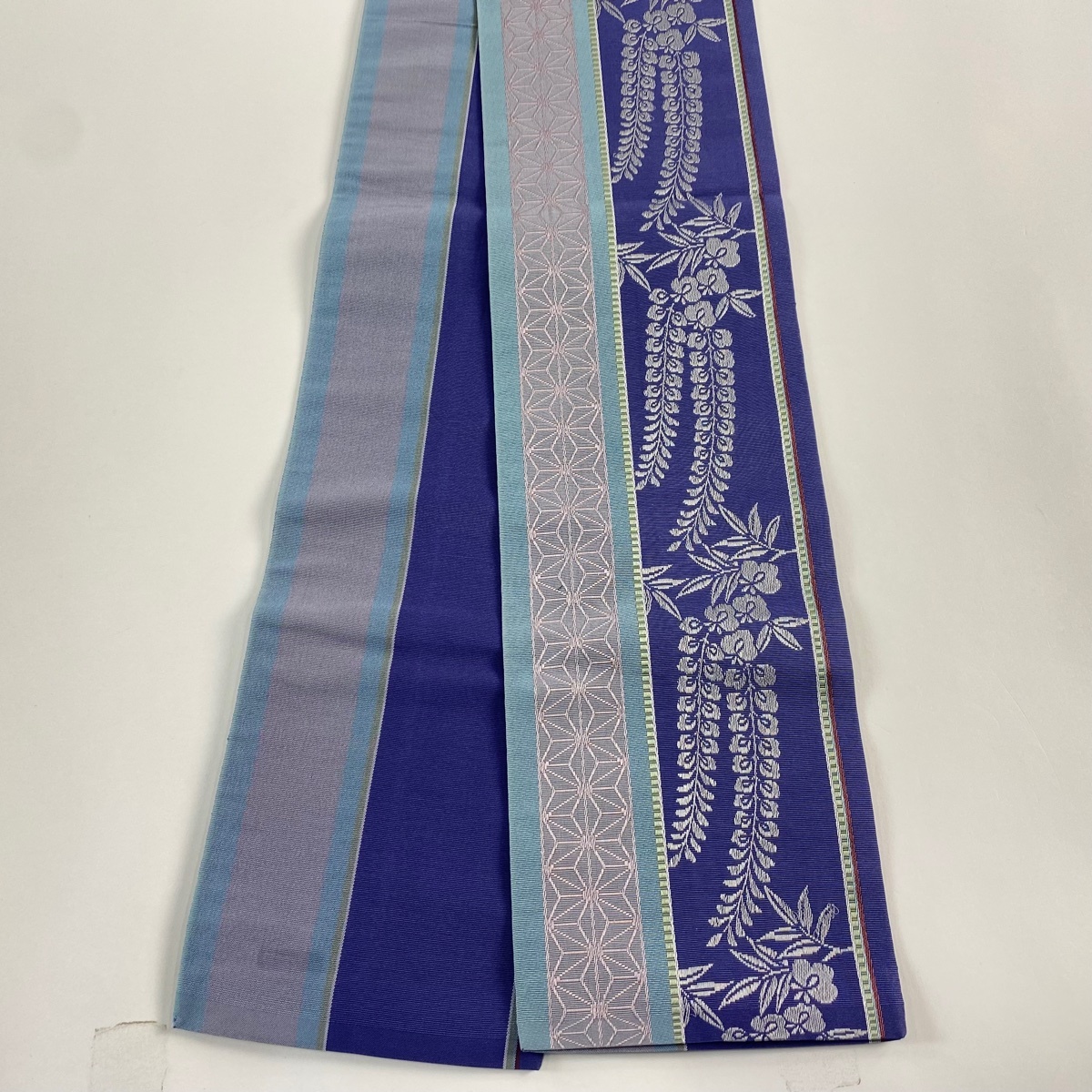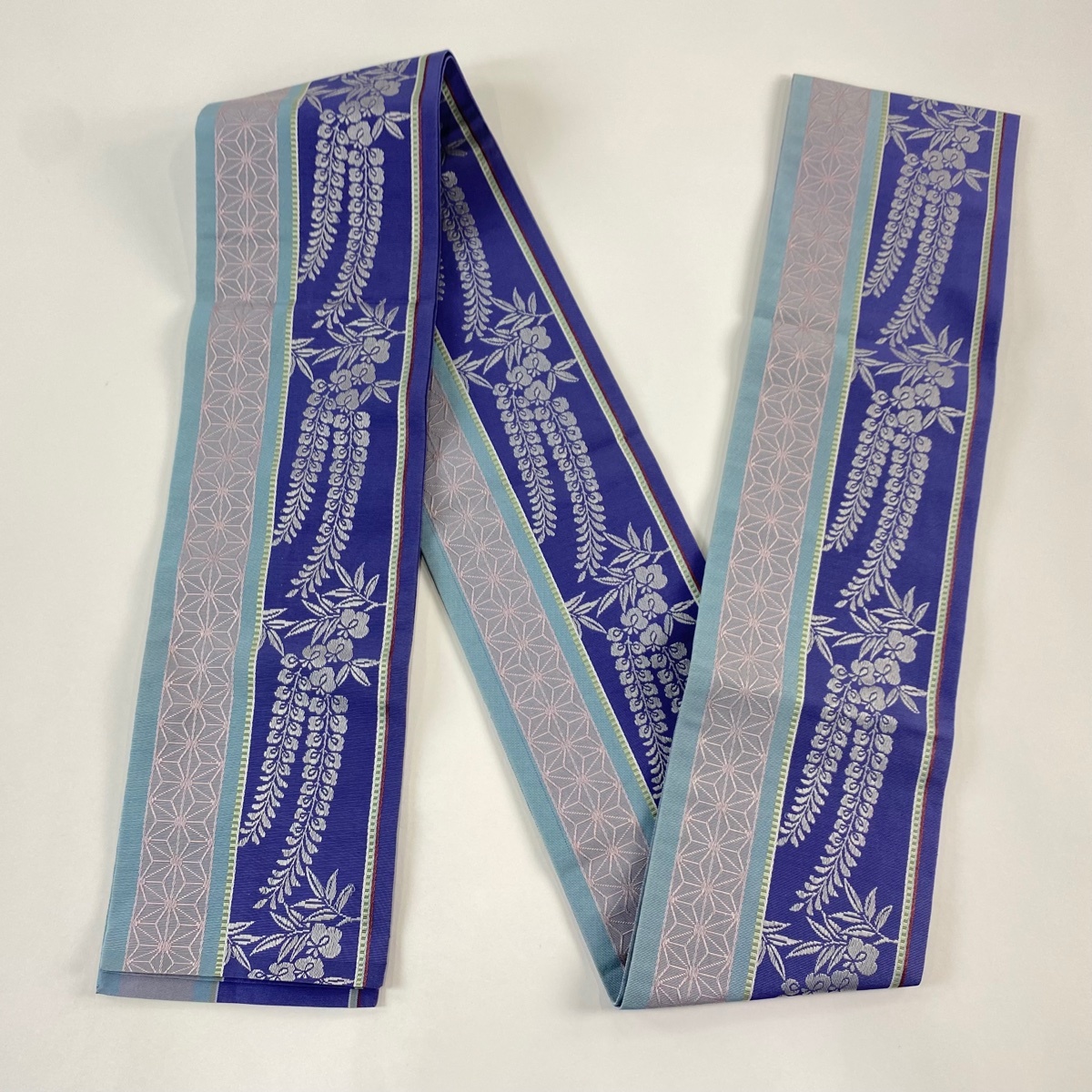 | 半幅帯 名品 証紙 本場筑前博多織 藤 麻の葉 青紫 正絹 【中古】 |