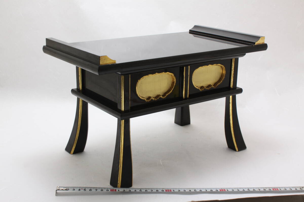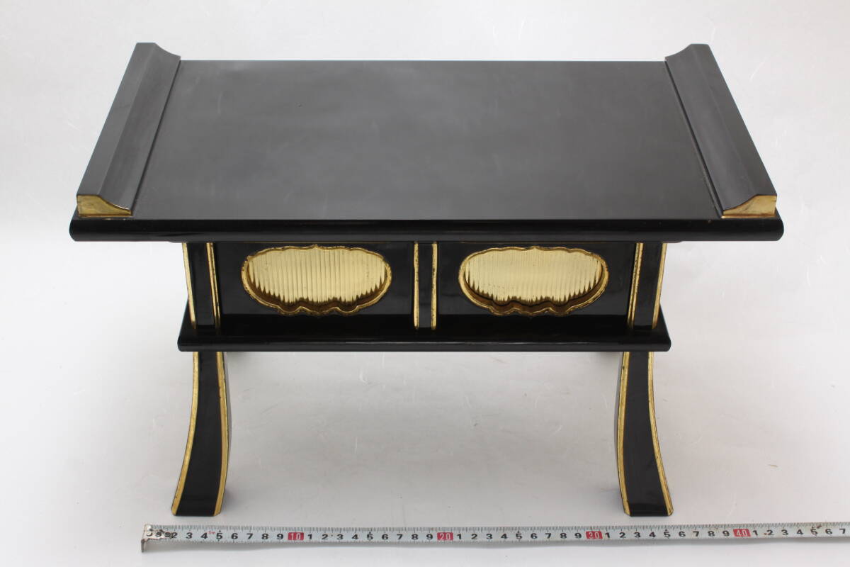 3677 仏具 経机 仏壇テーブル W40×D22×H25cm (約) お供え机 仏具 精密彫刻 木工芸 塗り物 金箔 仏教美術